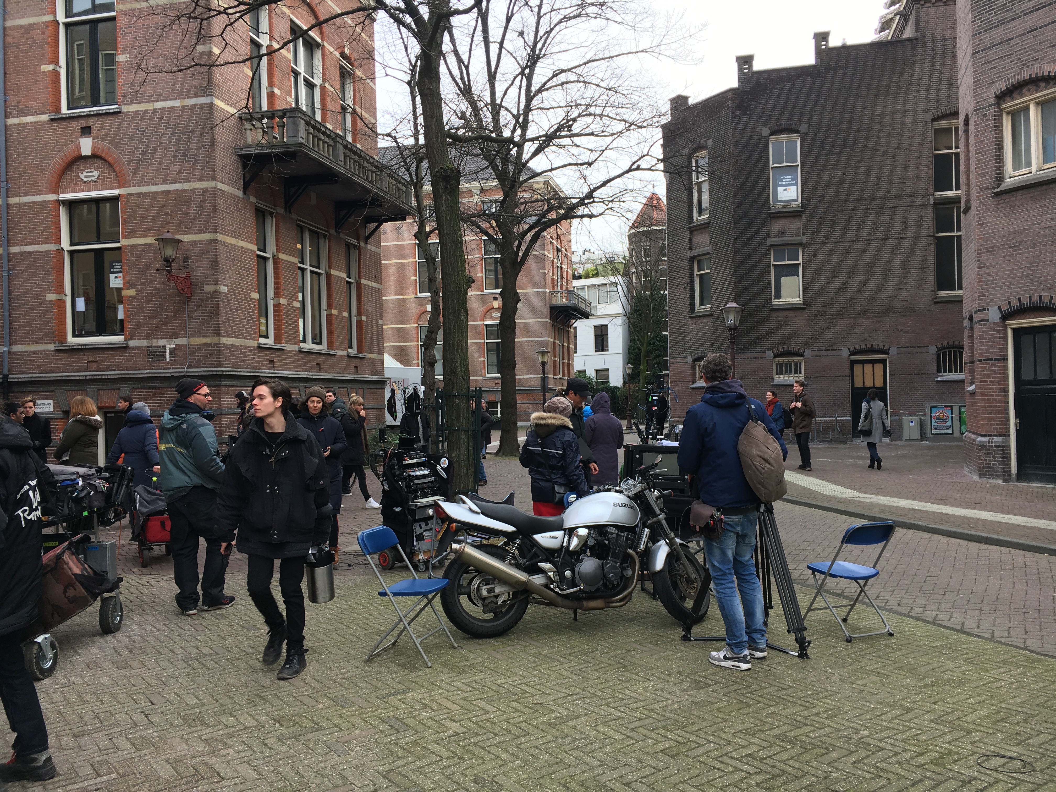 De half Nederlandse en half Duitse crew is in december begonnen met filmen. Ze schieten vooral op plekken in het centrum: de grachten, de wallen en gisteren stonden ze voor UvA-gebouw de Oudemanhuispoort. ‘En Duitsers willen natuurlijk ook een stukje zee in beeld’, zegt van Beek. ‘Daar waait het lekker hard.’