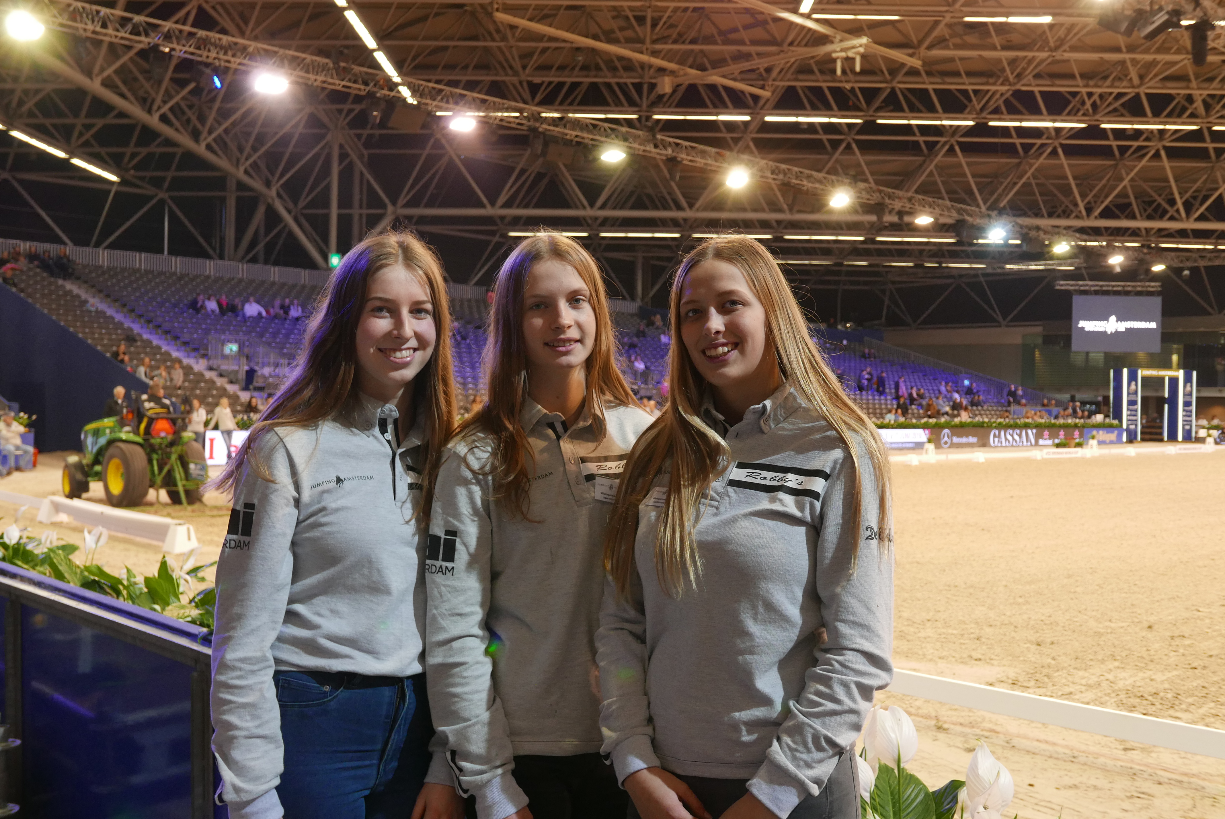 De ponyclub Wieringermeerruiters krijgt wel een kleine vergoeding. Dat geld wordt gebruikt om de manege op te knappen. Bijma: ‘Vorig jaar hebben wij een nieuwe bodem in de rijbak van de manege gebouwd. Daarvoor hebben we lang moeten sparen.’ Gaby (17), Jane (16) en Daniëlle (16) zijn onderdeel van deze vrijwilligersgroep. ‘Wij zitten op een paardenschool in Alkmaar. We kregen een dag vrij van school en kunnen nu ons grote idool Jill Huijbregts zien.’
