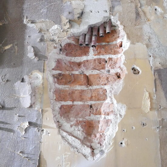Spui 11 is een bouwval van drie volledig gestripte verdiepingen. Beneden bij de ingang is het donker, de ramen zijn afgeplakt zodat de krakers van buiten niet kunnen worden gefotografeerd door de politie. De lucht is zwaar van het stof, dat dwarrelt in de lichtstreepjes die door de kieren in het plafond naar beneden schijnen. Rots knipt een lamp aan. ‘Het is eigenlijk ook moeilijk hier nog schade aan te richten.’ De betonnen muren zitten vol met gaten. De koperen gas- en waterleidingen zijn op sommige plekken vrijgeboord: het is alsof de aderen van het gebouw ontbloot zijn. Ze zijn doorgesneden.