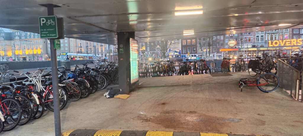 Bij de ingang van de Fietsflat bij Amsterdam Centraal wordt student Sofie van Borkum (24) onaangenaam verrast. Een gemeentewerker in een groen verkeershesje vertelt dat ze haar fiets in de nieuwe ondergrondse fietsenstalling moet zetten. De eerste 24 uur kan dat gratis, daarna kost het 1,35 euro per dag. Aan de paar dagen die ze bij haar ouders wil doorbrengen, hangt dus opeens een extra prijskaartje. ‘Je kan ook een abonnement nemen voor 80 euro per jaar,’ voegt de man in het groen toe. ‘Zit bandenplakken daar dan bij inbegrepen?’ begint Van Borkum. Ze lijkt nog steeds vastbesloten haar fiets de Fietsflat in te loodsen.