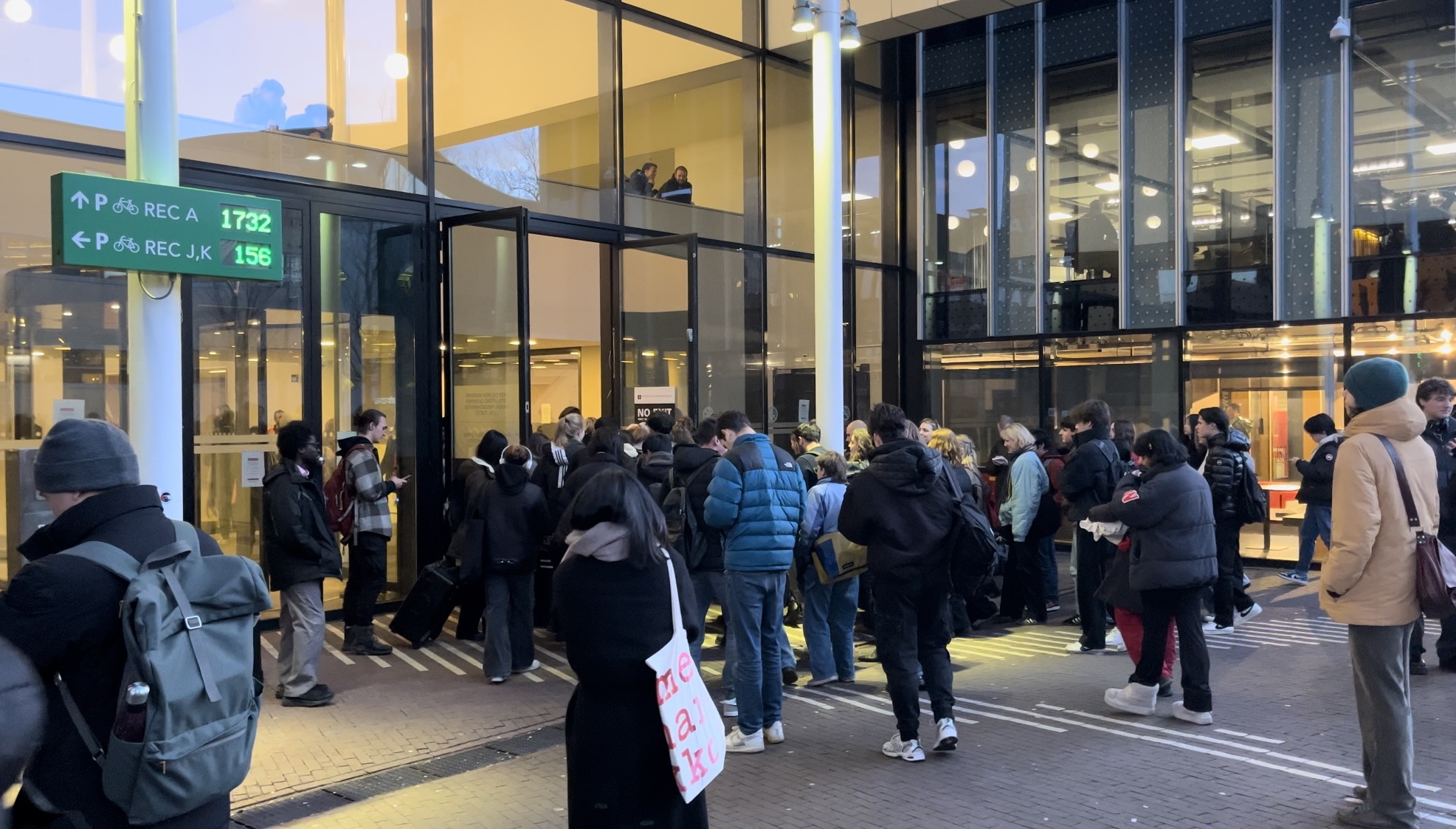 De UvA sloot donderdagmiddag haar deuren toen pro-Palenstijne demonstranten wilden protesteren in de centrale hal van de Roeterseilandcampus. Tientallen studenten moesten buiten wachten. ‘Ik steun het doel, maar ik vind het nogal irritant’, aldus een internationale studente. UvA-woordvoerder Annelies van Dijk legt uit waarom de universiteit besloot in te grijpen.