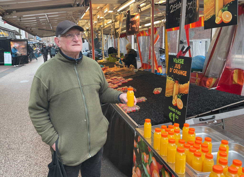 Joop van Ingen, die al twintig jaar boodschappen haalt op de markt, kan alleen maar een kleine zucht slaken. ‘Meestal staan de stallen er wel. Maar als het echt kutweer is, staan ze er natuurlijk niet.’ En dat was vroeger ook wel zo, zegt hij. Alles wordt vooral duurder. ‘Ik koop veel meer zaken zoals melk en vlees bij de supermarkt, en loop eerst alles af voor de beste prijs. Vroeger was een rondje op de markt genoeg.’