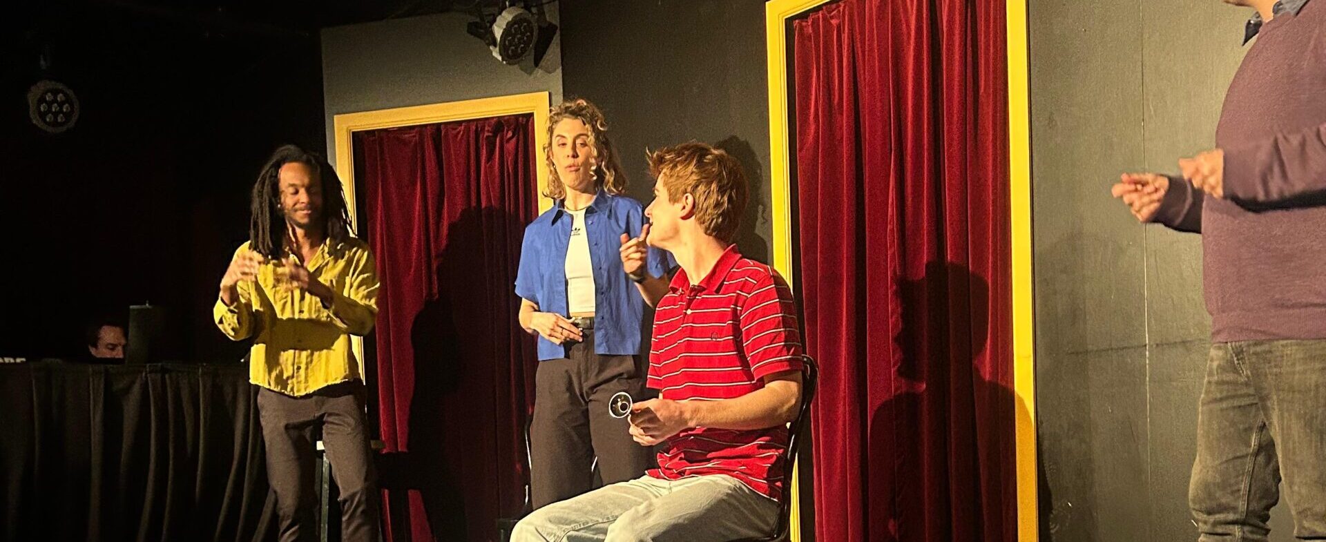 Een scène over hoe de vrouw op rij vier als klein kind verdwaalde in Arnhem? Een musical over een dag in het leven van de Italiaanse Federico? Of een lied over de recensent die nog zó probeerde om onopvallend in het publiek op te gaan? Iedereen kon als inspiratie dienen tijdens de WTF Improv-show van de Engelstalige comedyclub Boom Chicago.