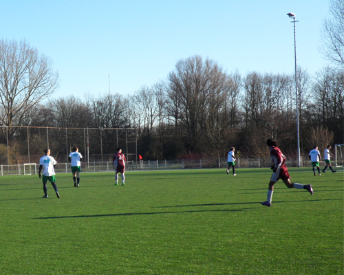 Het is zondagmiddag en de laatste wedstrijden worden beslist op de velden van Sportpark Sloten. In de kantine zit een team jongens van rond de veertien jaar aan een lange tafel met uitzicht op de velden. “Die komen voor een troostpatatje,” glimlacht Sylvia Bouwman, een blonde, goedlachse dame die achter de bar staat. “Ze hebben met 3-0 verloren.” Dat zou je niet zeggen. De jongens lachen en praten, het gaat al lang niet meer alleen over voetbal. Terwijl Bouwman koffie zet en tosti’s maakt, vertelt ze uitgebreid over ‘haar club’. “Nieuw Sloten is de jongste club op het sportpark, we bestaan nu acht jaar. Ik ben er al zes jaar bij.” De hele familie speelt bij de club: eerst drie dochters en sinds een jaar ook haar zoon en haar man. “Dat is zo leuk aan deze club: iedereen kan erbij, er zijn teams voor alle leeftijden. Het is vooral super gezellig, de meesten zijn hier ook nog na de wedstrijd om te kletsen. Dat is belangrijk voor een vereniging. We verplichten het niet, we laten iedereen heel vrij.”