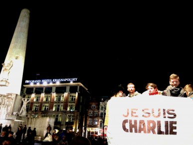 “Meneer, Geert Wilders zegt dat het oorlog is. Wat vindt u?” Een man met een bordje Je suis Charlie krijgt een microfoon onder de neus geschoven en weet van schrik niet wat hij moet zeggen. Andere demonstranten, onder wie veel Fransen, willen hun boosheid graag kwijt aan de toegestroomde pers. Even later zet de stoet van enkele honderden zich in beweging vanaf de Vijzelgracht richting de Dam.