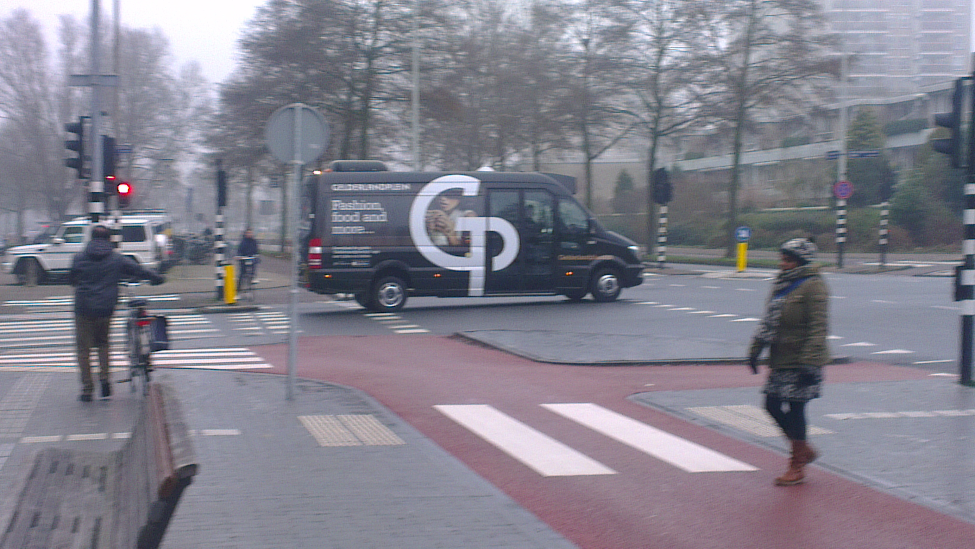 We gaan dieper Buitenveldert in. Op straat is het druk, mensen krabben hun autoruiten ijsvrij. Halverwege de route stopt de chauffeur een paar minuten. Geen spoor van de oudjes, de deur blijft dicht.