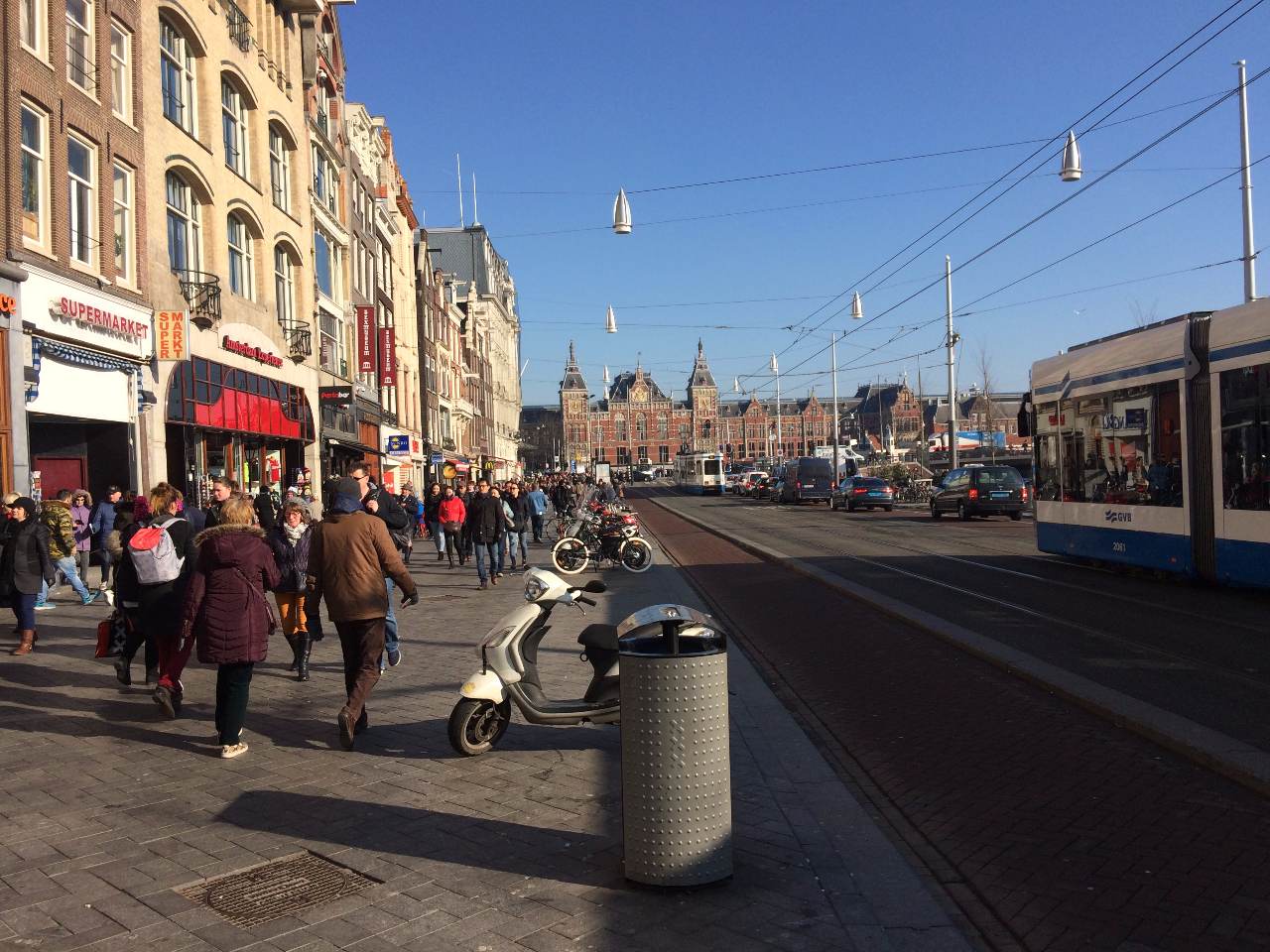 Het is er altijd druk, op het Damrak. Vanaf het Centraal Station loopt een onophoudelijke stroom toeristen vanaf het station richting De Dam, of andersom. Ter hoogte van Tours & Tickets is het even nog meer dringen geblazen. Een groep toeristen verzamelt zich rondom een jongedame met een rode jas. Ze houdt een bordje omhoog. ‘Bruges’. Als een schoolklasje lopen de toeristen even later achter de rode jas aan, over de Prins Hendrikkade naar Hotel Barbizon Palace. Voor het hotel verdwijnen ze in een touringcar. Op naar België.