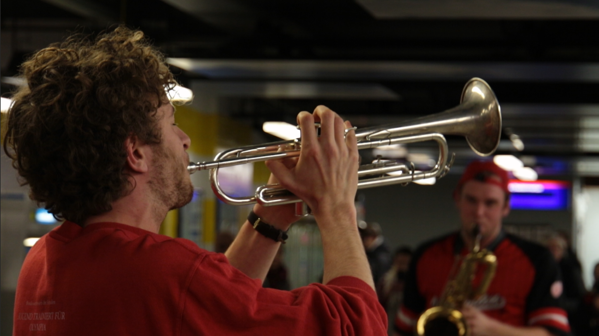 Brass Rave Unit blies op verzoek van GVB Amsterdam en Natwerk leven in kil metrostation Weesperplein.