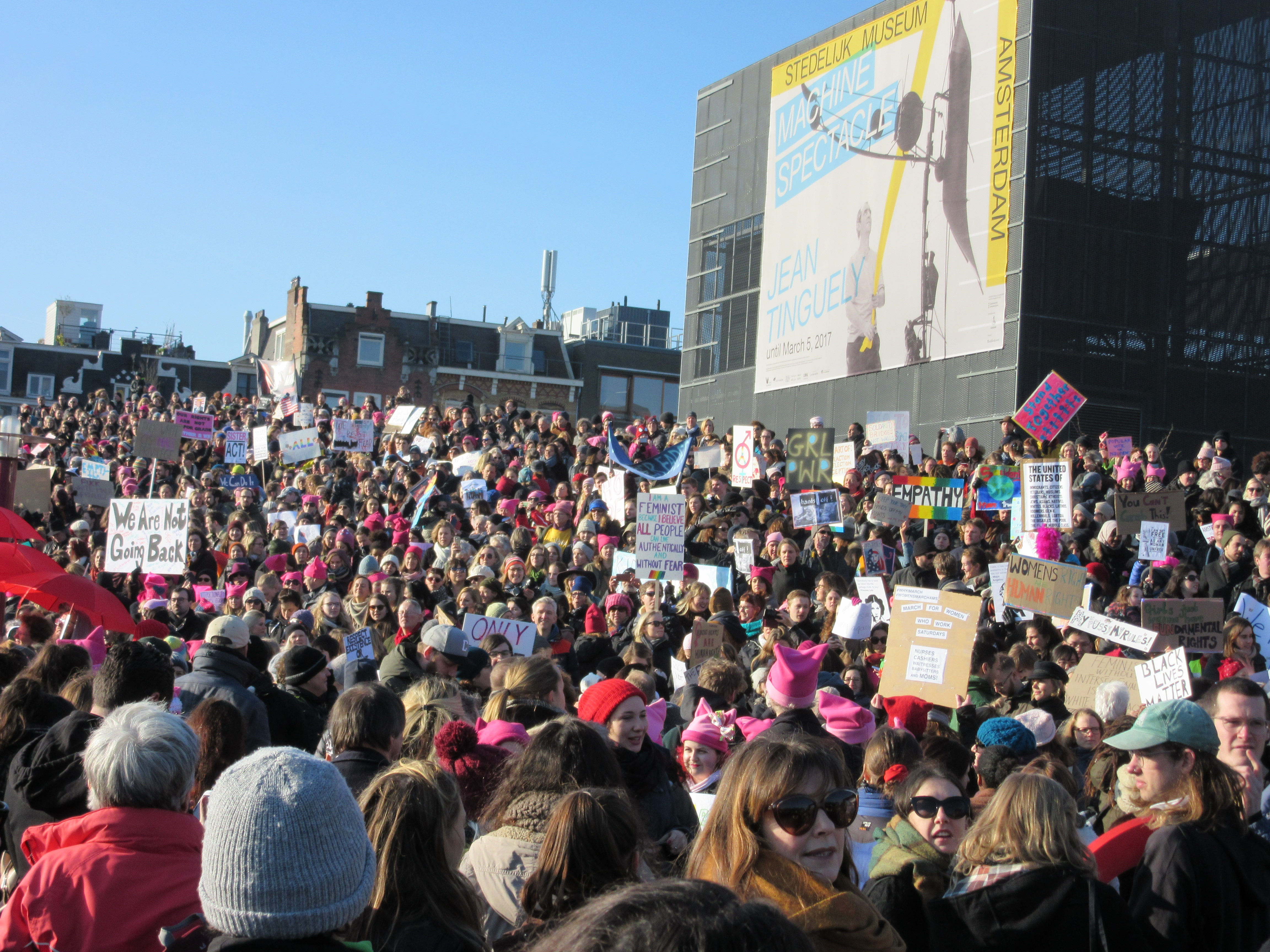 Mensen over de hele wereld demonstreren vandaag tegen ongelijkheid en intolerantie, naar aanleiding van het presidentschap van Donald Trump. Zo’n drieduizend man staan vandaag op het Museumplein, waar een van de 616 Women’s Marches plaatsvindt.