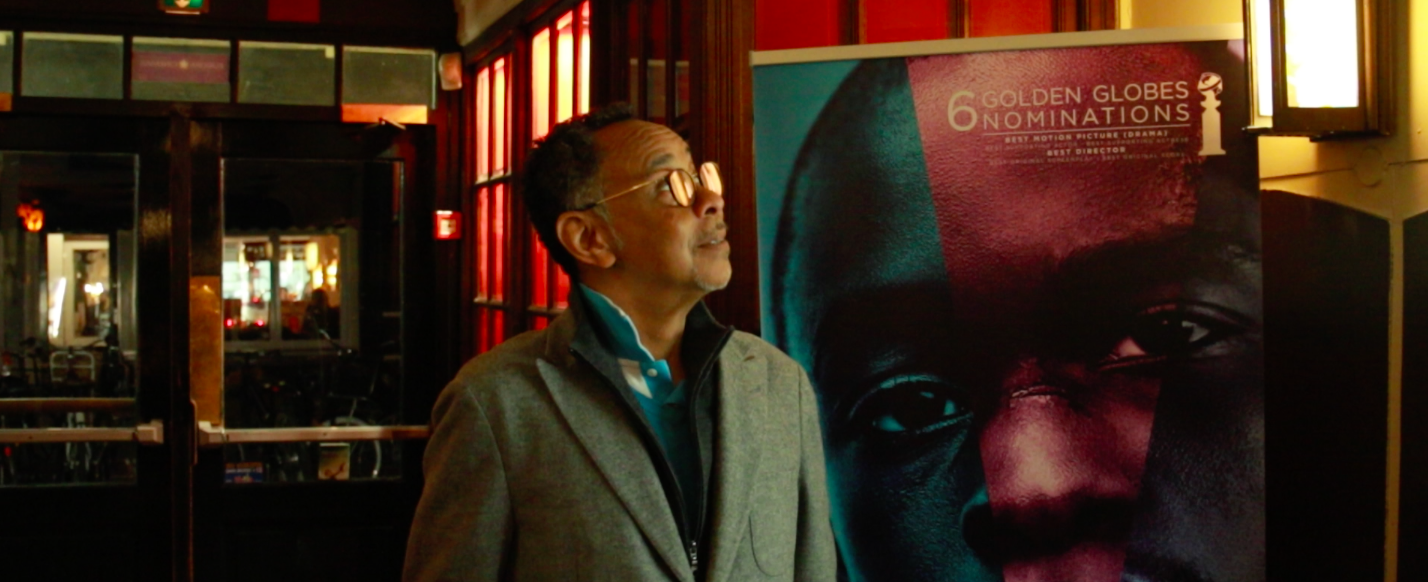 Een taxi stopt aan de Haarlemmerdijk voor The Movies. Na een wandelstok volgt een lange man, Glenn Helberg. Vanavond draait de voor acht Oscars genomineerde film Moonlight (Barry Jenkins): een coming-of-age film die de thema’s homoseksualiteit, zwarte identiteit en het opgroeien in een ruige buurt behandelt. Thema’s die grotendeels ook in Helbergs leven spelen. Helberg manoeuvreert zich met zijn stok elegant door het doolhof van fietsen. “Ik had niet verwacht dat zo’n mooie jonge dame me zou opwachten.”