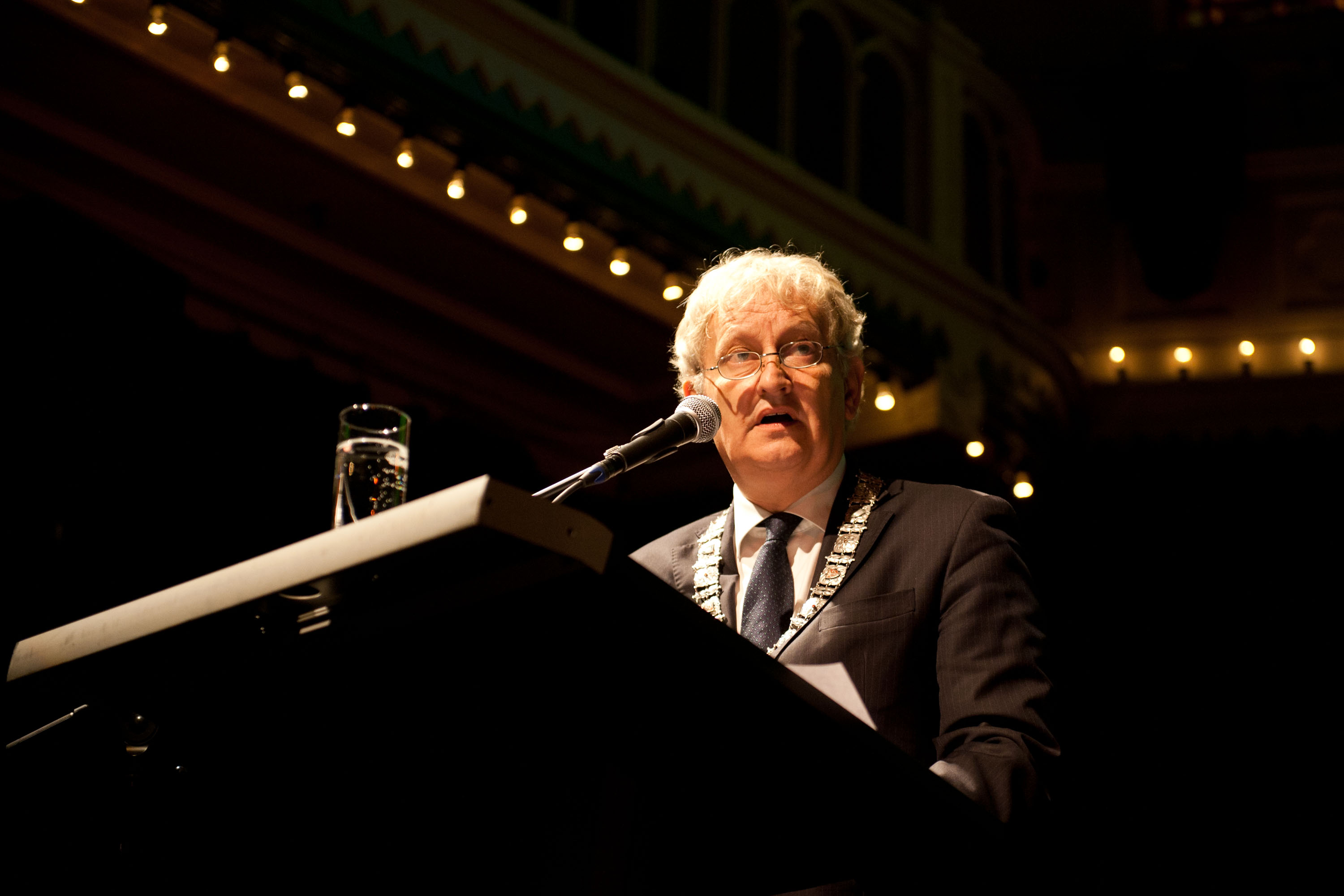 “Vier jaar geleden was ik trouwambtenaar bij het huwelijk van Thomas Acda en Esmé Wekker. Toen ik bezig was met mijn speech kwam ik erachter dat ik de verkeerde blaadjes in mijn hand had. Ik moest de speech tijdelijk afbreken om de juiste blaadjes te gaan halen – een vreselijke blamage. Twee jaar later zou Thomas mij trouwen. Hij deed toen alsof hij zijn speech vergeten was. En toen kwam Eberhard van der Laan ineens binnen: ‘Thomas, Thomas! Ik heb je speech hier!’ Het was een enorme verrassing! Zijn bereidheid om mee te doen met deze grap kenmerkt de burgemeester. Door deze ervaring is hij voor mij onsterfelijk geworden.”