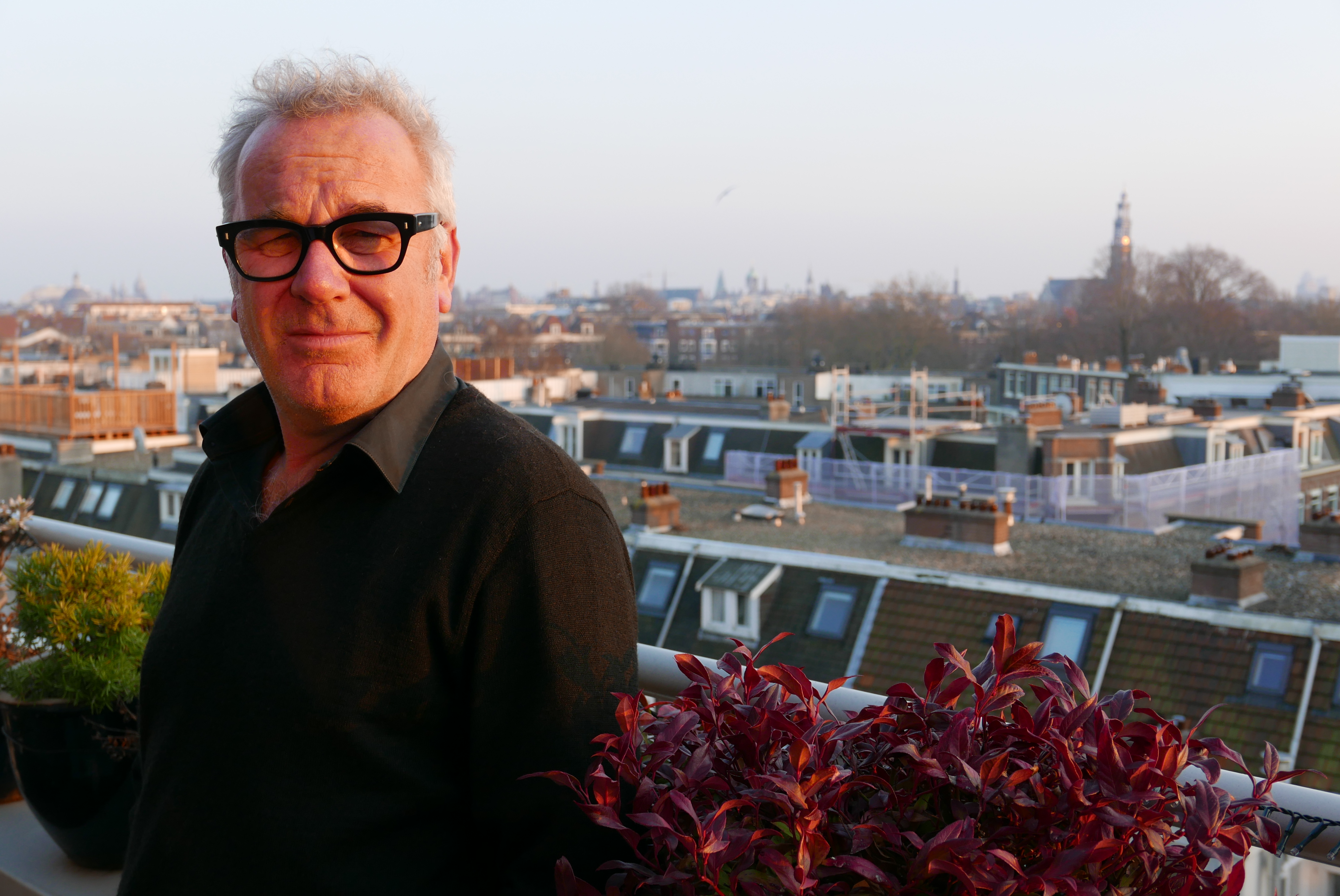 “We zijn gebakken aan Amsterdam. Het uitzicht zal hier altijd vrij blijven en het is hier rustig. We hebben aan drie kanten een terras. ’s Zomers zitten we aan de ene kant in de zon te ontbijten, ’s avonds dineren we aan de andere kant met vrienden. Musea, het Concertgebouw, de schouwburg, de bioscoop: alles is in de buurt. Nee, koste wat kost – wij gaan hier nooit meer weg.”