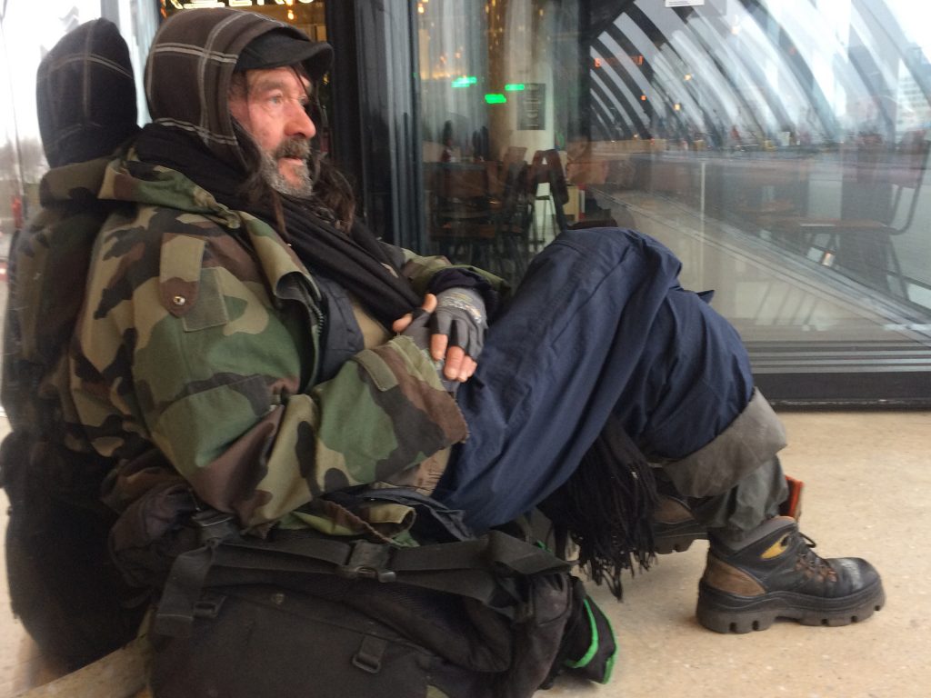 Een oude, Portugese straatmuzikant ligt achter het Centraal Station in de kou te staren naar het water. Ook hij maakt zich niet druk. “Ach, het is maar wind. Zo koud is het toch niet?”