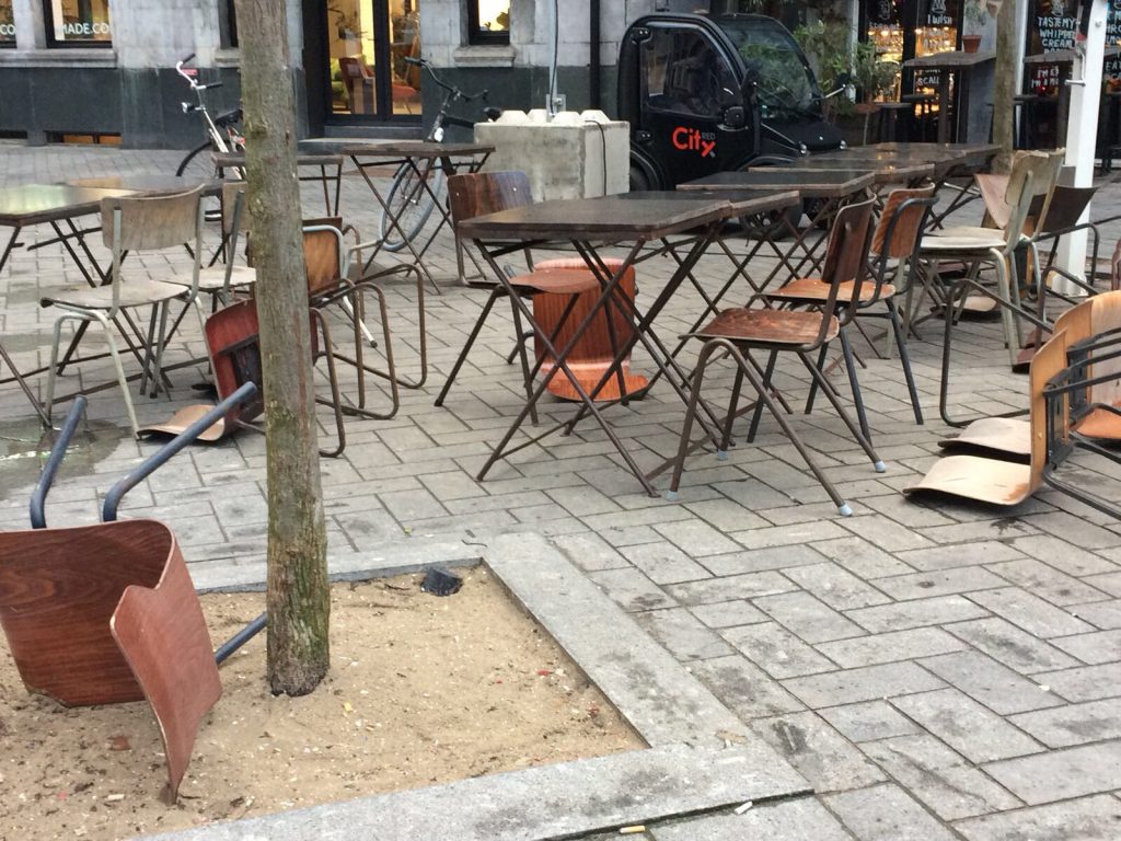 Student Barbara Marques mist een belangrijke dag op de Universiteit Utrecht. Ze was op weg vanuit station Sloterdijk, maar haar trein reed niet verder. “We stopten op Centraal. De belofte was dat we tien minuten later wel verder zouden rijden, maar dat gebeurde maar niet. Uiteindelijk moesten we toch uitstappen.” Wat nu? “I call it a day.” Universiteit Utrecht heeft laten weeten dat er vandaag geen aanwezigheidsplicht meer geldt en tentamens niet vandaag gemaakt hoeven te worden. Een aantal cafeetjes zoals de Ster, dat nu enkele dakpanelen mist, panikeren niet om de afwezigheid van de klanten. “Dat komt wel, ze moeten zich toch nog een keer opwarmen”, zegt een rokende man voor de deur.