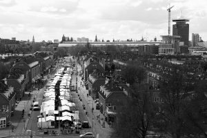 Het einde van de markt leidt naar winkelcentrum Mosveld. ‘Ik woon hier achter in een hele fijne straat. Je hebt er alles door elkaar: Hollanders, Surinamers.’ De wind blaast Helga Tjong-Yang (59) bijna van de rode klinkers af. In haar straat woont zij al 18 jaar, maar daar gaat vlot verandering in komen. Ze verhuist naar Almere. ‘De kinderen zijn uit huis en nu zit ik alleen in een huis met vijf kamers. Veel te veel!’ De gemeenteraadsverkiezingen vindt ze nog ver weg. ‘Forum voor Democratie? Nog nooit van gehoord. Als ik stem ga ik voor de dieren, of 50 plus. Die zijn tenminste bezig met mensen van boven de vijftig die geen baan kunnen krijgen, zoals ik.’