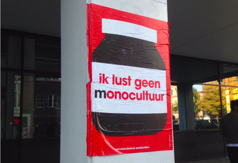In eerste instantie maakte Veerman zich niet druk. Hij had zijn poster, een pot nutella met op het etiket ‘Ik lust geen monocultuur’, juist ontworpen voor verspreiding onder Amsterdammers. Zelf claimt hij ze ook niet in de stad opgeplakt te hebben. Hij ziet het als een compliment dat mensen met zijn werk aan de haal gaan. ‘Ik vind het heerlijk dat ze massaal geplakt zijn. Juist illegaal.’ vertelt hij. ‘Godverdomme, daar moet ook gewoon ruimte voor zijn.’