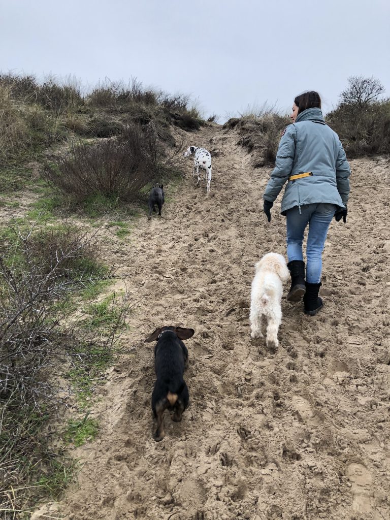 Geurts heeft goed contact met andere beginnende hondenuitlaatservices. ‘Er is zoveel vraag in Amsterdam.’ Ze loopt regelmatig met de eigenaresse van een andere hondenuitlaatservice. ‘Dan bespreken we van alles en geven we elkaar tips. Zo help je elkaar toch een beetje.’