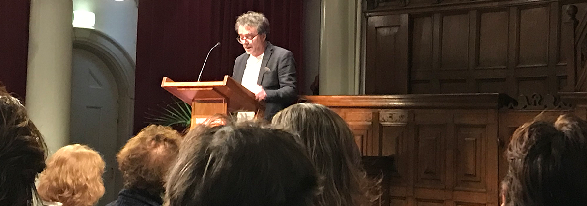 AMSTERDAM – Sportjournalisten moeten meer verhalen vertellen in hun stukken, want anders wordt sport in de toekomst een ‘betekenisloze en steriele activiteit’. Die waarschuwing gaf Volkskrant-columnist en schrijver Bert Wagendorp (62) woensdagmiddag tijdens zijn lezing Fictie moet de sport redden in een uitverkochte Rode Hoed.