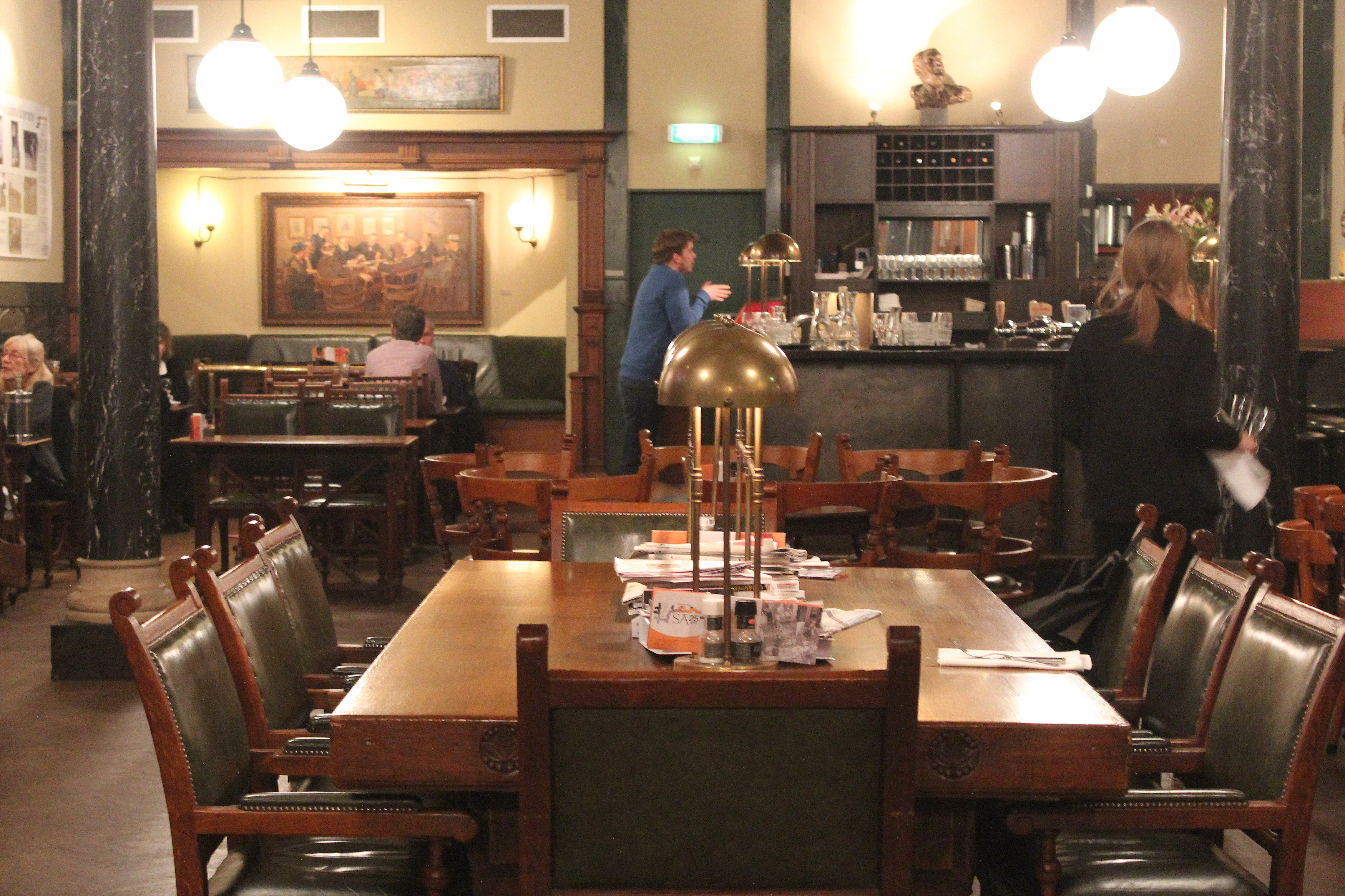 Wie de Arti binnenkomt, stapt in een tijdscapsule. De sociëteit is ongewoon ruim opgezet voor Amsterdamse begrippen. De afwezigheid van muziek maakt de eiken meubels zwaarder, het houten plafond donkerder. In het midden van de sociëteit staat een grote leestafel, daaraan stoelen waarvan sommige nog door oud-Artilid Hendrik Berlage zijn ontworpen. Een oudere dame bladert door een krant. Rechts van de schouw buigen twee mannen zich over een schaakbord.