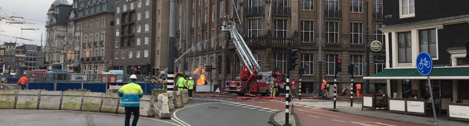 AMSTERDAM – Bij werkzaamheden voor het art’otel op de Prins Hendrikkade is vanochtend een grote brand ontstaan door een gaslek. Inmiddels is de brand geblust.