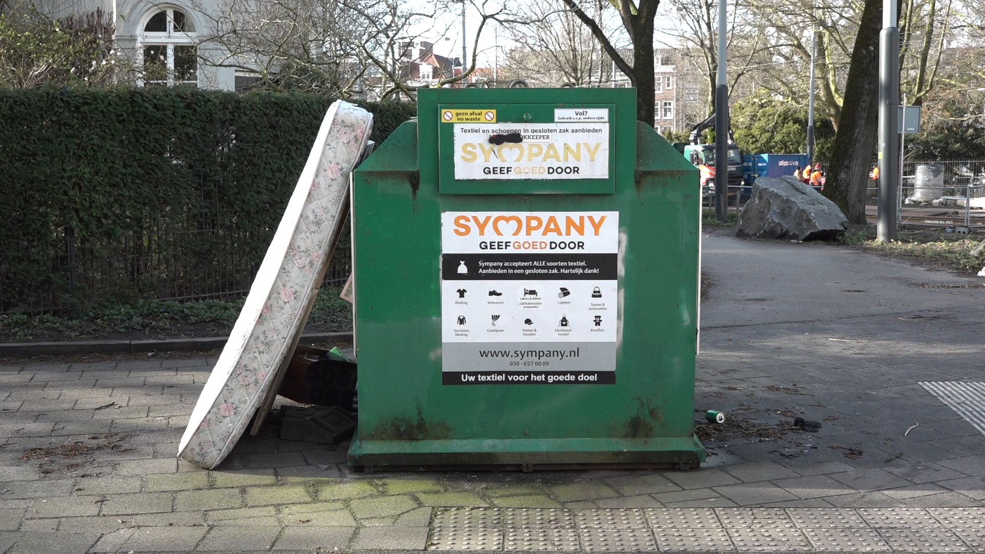 Sinds 2015 zamelt stichting Sympany het textiel in Amsterdam in. Met honderden inzamelcontainers en twee verschillende sorteercentra in het land lijkt dit goed geregeld, maar het bedrijf moet alle zeilen bijzetten om de kosten van inzameling goed te maken. Waar het in eerdere jaren volgens directrice Erica van Doorn nog ‘gouden tijden’ beleefde, is het bedrijf nu veel geld kwijt aan het verwerken van steeds vaker aangetast textiel. Het geld dat onder aan de streep overblijft wordt steeds minder. Dat geld gaat nu naar de circulaire economie in plaats van naar goede doelen, waar de stichting voorheen het geld aan besteedde. Ook andere textielbedrijven geven aan dat de textielinzameling niet meer is wat het ooit was.