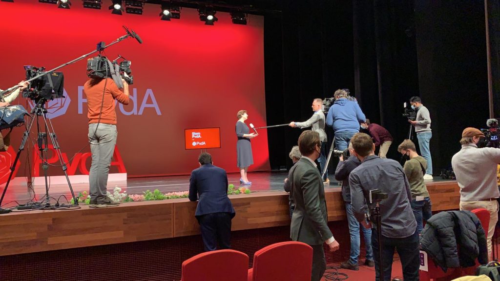 Lilianne Ploumen tijdens de bekendmaking van het lijsttrekkersschap. Foto: Sarah Bürmann.