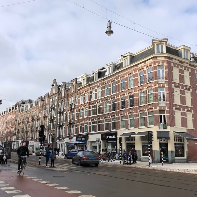 De gevoelstemperatuur tikt min 7 graden celsius aan in de Amsterdamse Kinkerstraat. Het wegdek is grotendeels schoongeveegd en de sneeuw is modderig geworden. Tram 17 rijdt weer en rommelt luid door de straat, voorbijgangers schuifelen ingepakt in jassen, mutsen en sjaals over de gladde stoep voor de conceptstore Gekaapt.