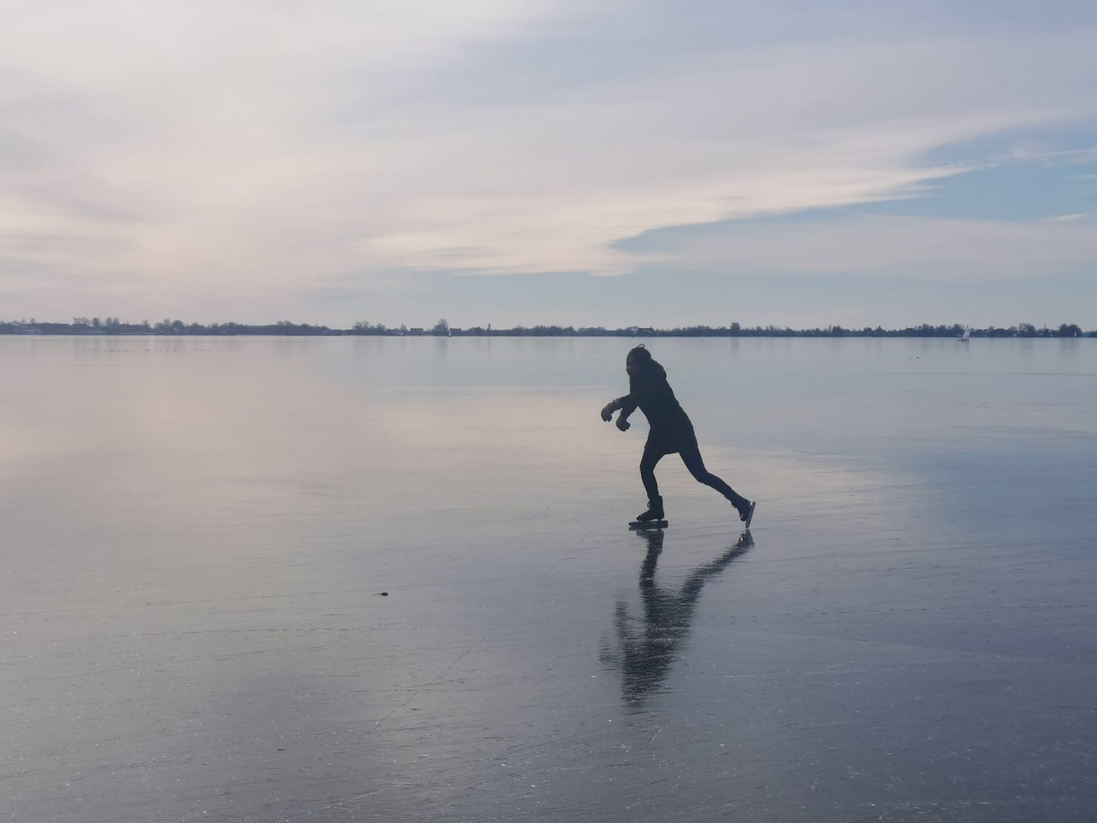 Rondom Amsterdam hebben velen besloten hun ijzers onder te binden. Op de Westeinder Plassen in Aalsmeer maken schaatsers langere tochtjes.