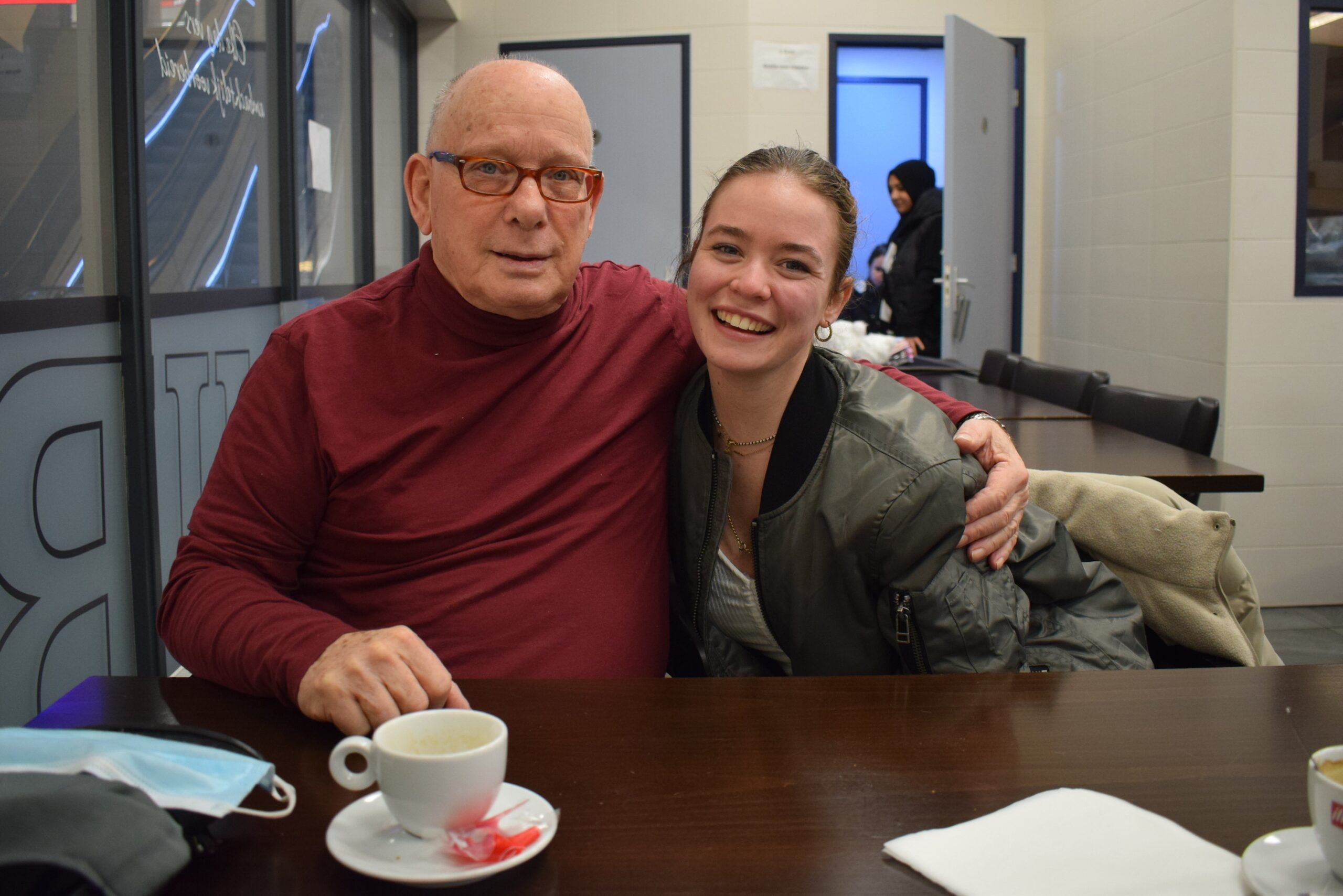 Niet alleen voor werknemers is de opening van de horeca fijn. Voor sommige oudere gasten is een horecabezoek het lichtpuntje van hun week. Zo is het voor Willem Lelie (82) heel fijn om weer even de deur uit te kunnen, om samen met zijn maatje Hélène van den Broek (21) een koffietje te drinken.