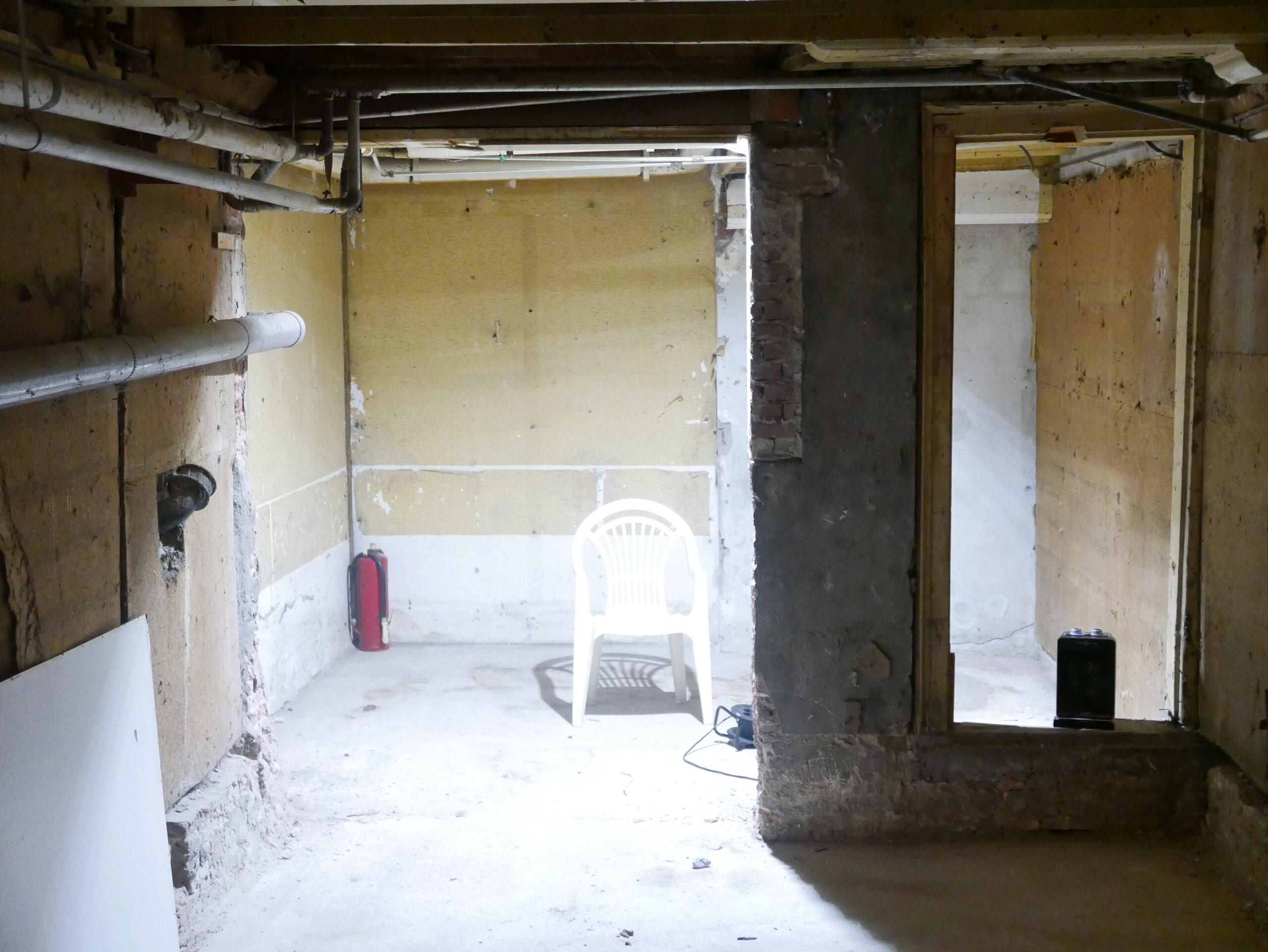 Spui 11 is een bouwval van drie volledig gestripte verdiepingen. Beneden bij de ingang is het donker, de ramen zijn afgeplakt zodat de krakers van buiten niet kunnen worden gefotografeerd door de politie. De lucht is zwaar van het stof, dat dwarrelt in de lichtstreepjes die door de kieren in het plafond naar beneden schijnen. Rots knipt een lamp aan. ‘Het is eigenlijk ook moeilijk hier nog schade aan te richten.’ De betonnen muren zitten vol met gaten. De koperen gas- en waterleidingen zijn op sommige plekken vrijgeboord: het is alsof de aderen van het gebouw ontbloot zijn. Ze zijn doorgesneden.
