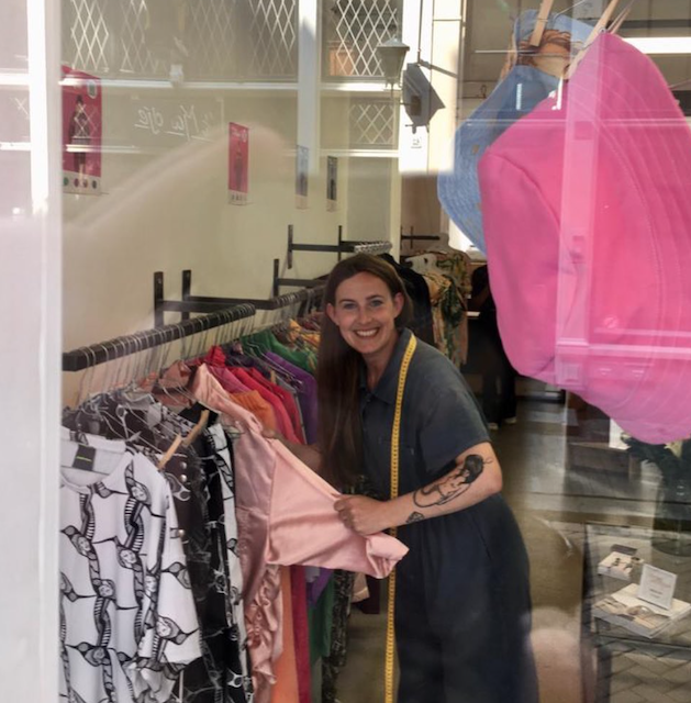 In broedplaats Lola Luid in Nieuw-West zit LOGOCOMO, het duurzame kledingbedrijf van Romy van Eijk (34). Van Eijk is elf jaar geleden afgestudeerd als modevormgever en begon met het maken van kostuumkleding voor optredens. ‘Maar door corona vielen veel opdrachten weg,’ zegt van Eijk. ‘Daar ben ik uiteindelijk wel dankbaar voor, omdat ik de tijd kreeg om na te denken over wat ik écht belangrijk vind: betere materialen gebruiken en bijdragen aan de circulariteit van kleding.’