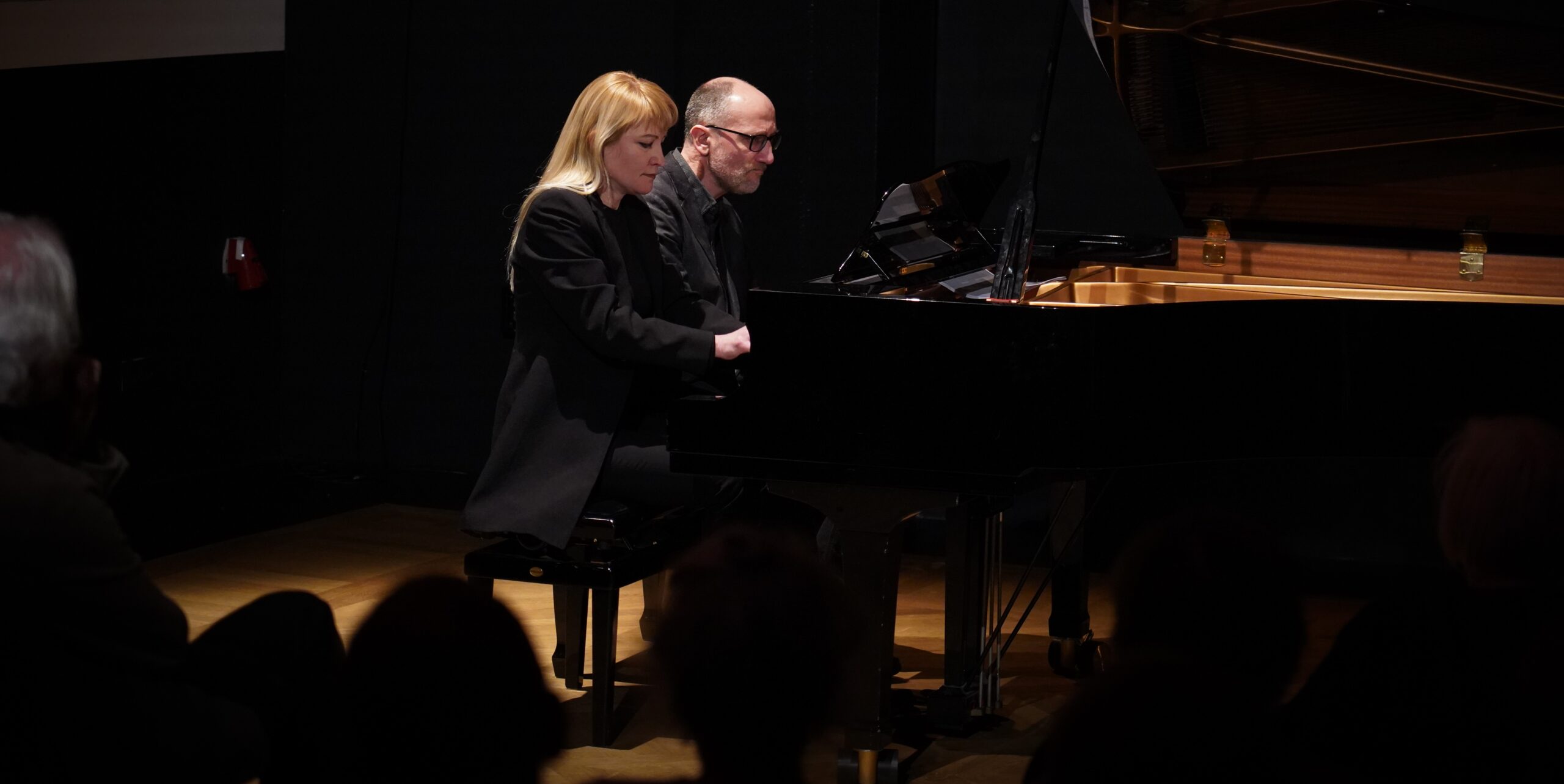 ‘Ik ben altijd nerveus als ik na mijn dochter moet spelen.’ Een gelaten grapje van Hennadii Beziazychnyi, die met het bladmuziek in zijn hand houvast zoekt bij de vleugel. Kort daarvoor speelde zijn negenjarige dochter Yulianna moeiteloos meerdere stukken uit haar hoofd, onder andere van Chopin. De vrouw van Beziazychnyi, eveneens pianist, legt aan het 64-koppige publiek uit waarom het een bijzondere avond is: haar man speelt hier met goedkeuring van het Oekraïense ministerie van Cultuur.