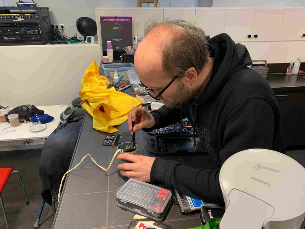 Die populariteit is ook te zien aan de Rijnstraat, waar buurtbewoners in de rij staan om geholpen te worden. ‘Kom ik vandaag nog aan de beurt?’, vraagt Frederique Bergman (73). Ze woont hier om de hoek en heeft een kapotte melkschuimer. ‘Ik dacht: ik kan hem wegdoen, maar laat ik nog één poging wagen.’