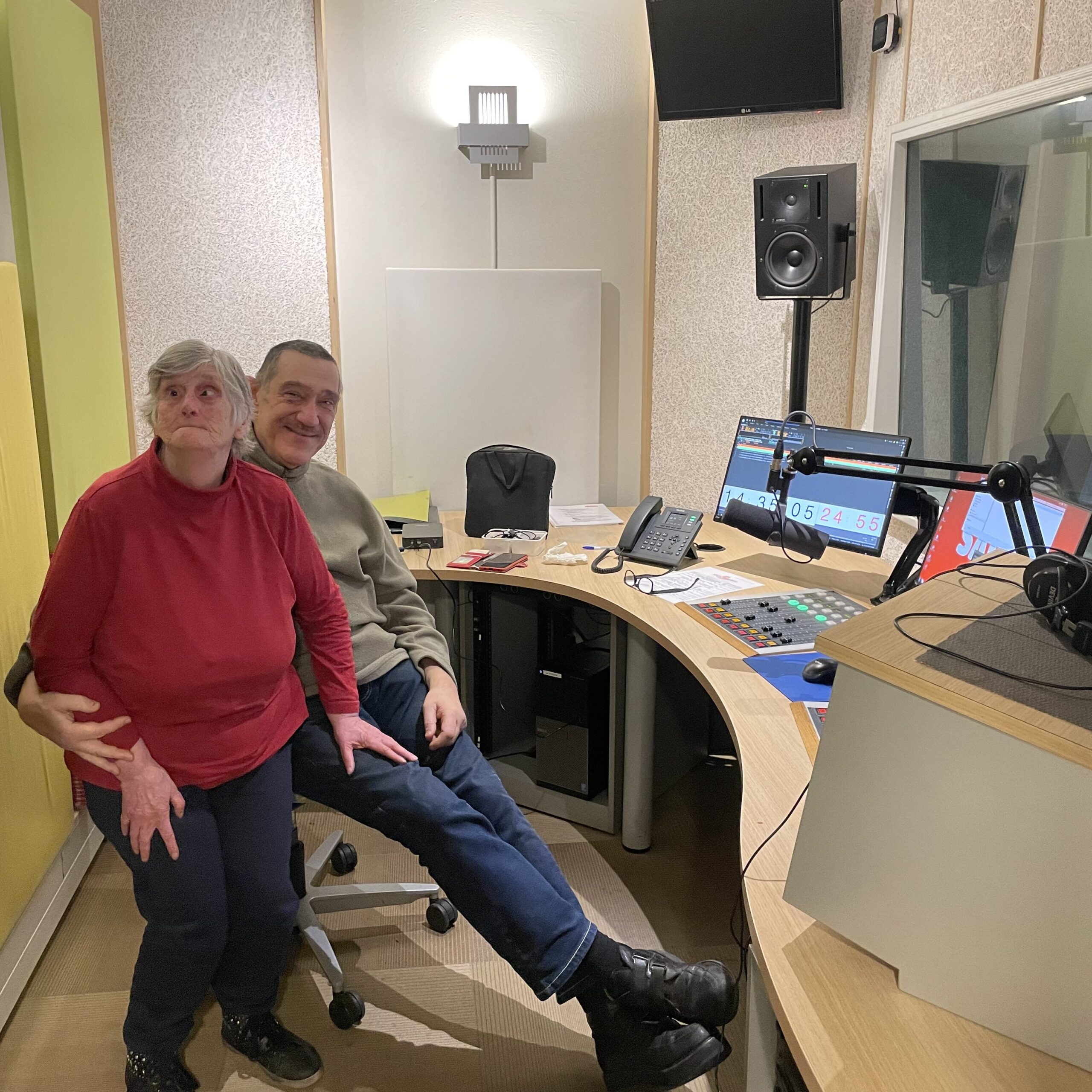 Bep en Michiel van Eenige in de techniekruimte van de radiostudio.