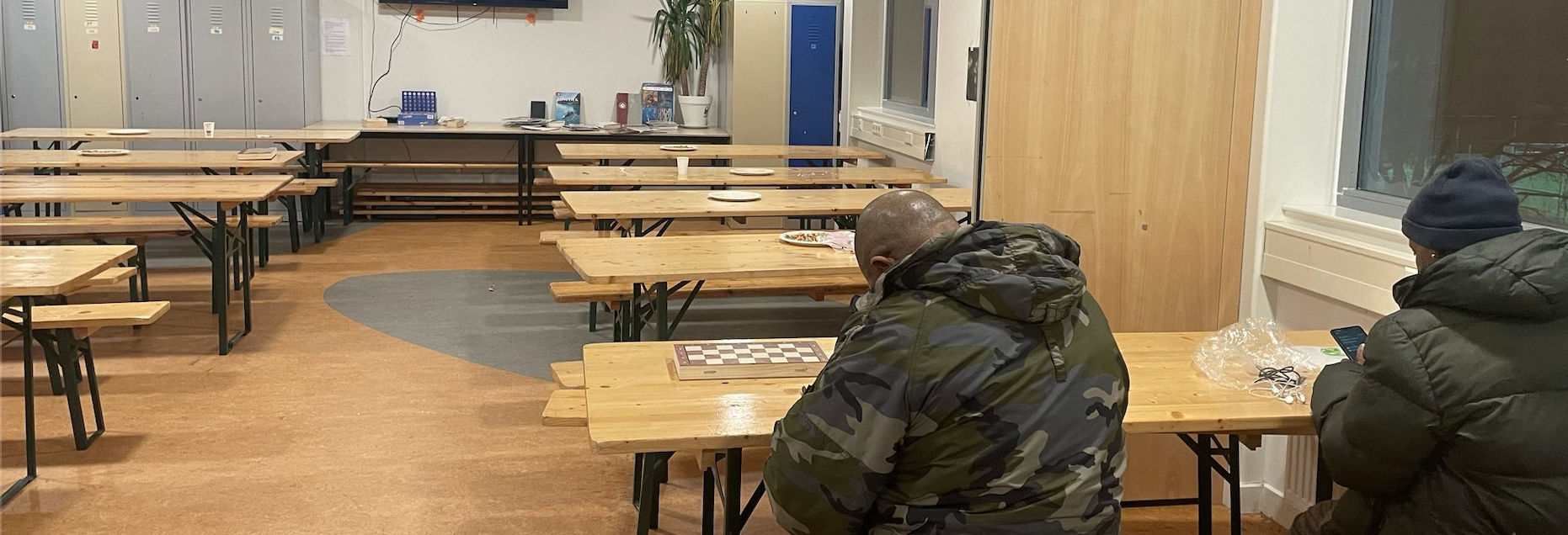 Aan een tafel zit Benjamin (30). Hij wil zijn achternaam niet vertellen en moet nog even schakelen naar het hebben van een gesprek. ‘Ik ben het vertrouwen in de mens verloren, weet je,’ vertelt hij. ‘Maar hier voel ik me veilig, hier zijn ze lief.’