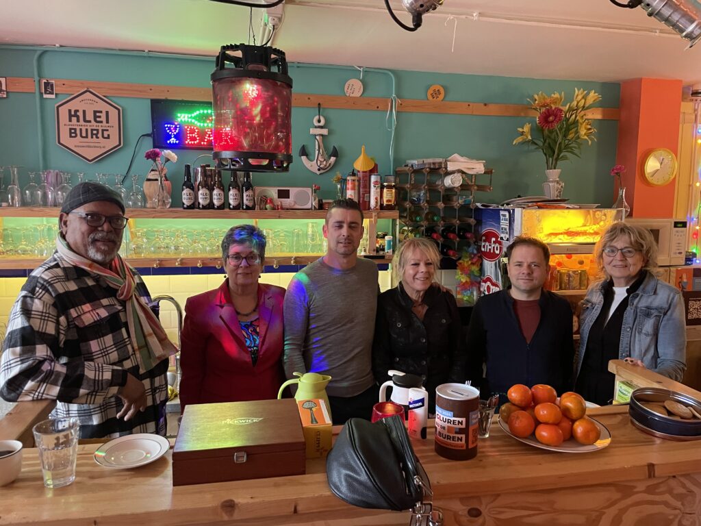 De zes organisatoren en beheerders van het café vertellen trots over hun ‘community centre’, dat eerst in bruikleen werd gegeven door een projectontwikkelaar. Na zeven jaar werd het met steun van 200 obligatiehouders gekocht. ‘We betalen nu huur aan een stichting en bieden een plek voor buren om samen te komen, inclusief eetavonden en andere activiteiten.’ legt de gepensioneerde maatschappelijk werker en secretaris van het bestuur, Henk Sallons, uit.