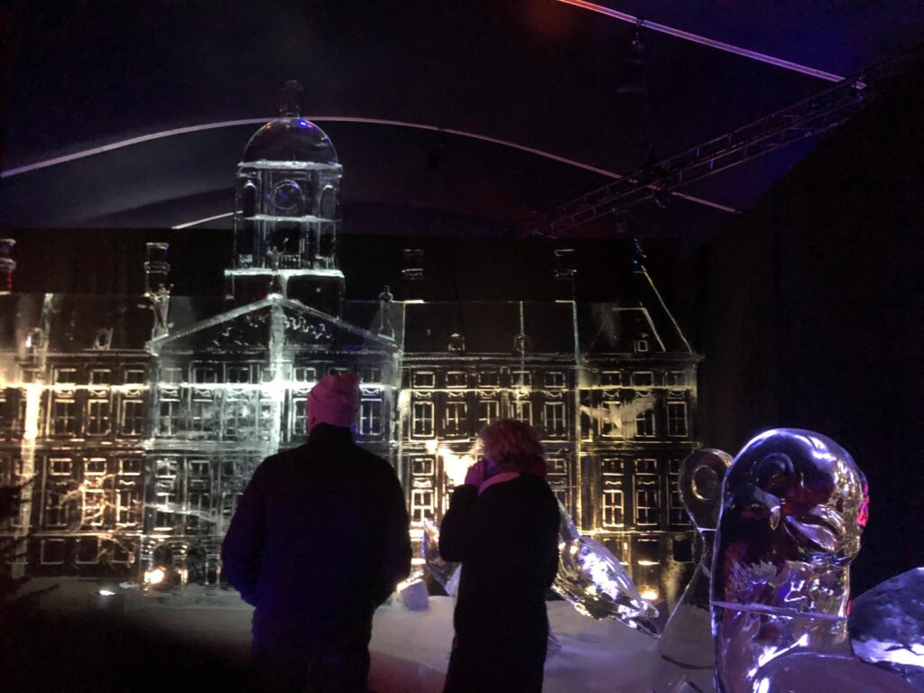 Binnen een maand heeft een internationaal team van 43 ijskunstenaars de tentoonstelling opgetuigd in een grote tent. ‘Dat was een creatieve gezelligheid,’ zegt projectleider Dewi Warmerdam. ‘Zoveel icecarvers zijn er niet, dus die mensen kennen elkaar allemaal. In de winter reizen ze de wereld over en in de zomer maken de meesten zandsculpturen.’