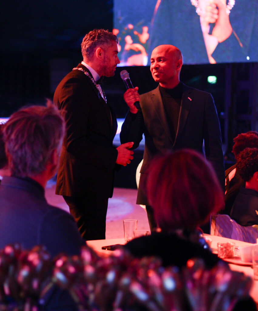 Het combineren van het gala met Jumping Amsterdam is bijzonder, vertelt Frank Thewessem, directeur Topsport Amsterdam. ‘Er is veel gebeurd om dit voor elkaar te krijgen. Tot drie uur vannacht is hier geoefend en binnen vijf kwartier moet straks de piste voor de paarden weer leeg zijn. Tientallen mensen hebben zich letterlijk zweet en tranen gewerkt om deze twee projecten in elkaar te schuiven.’ Het ontwerp van het gala is elk jaar anders, legt eventmanager Fret van Turenhout uit. ‘Hier kunnen we dingen ophangen. Dat ging vorig jaar, op een wielerbaan niet. We kunnen nu ook materiaal van Jumping Amsterdam gebruiken, zoals het grote beeldscherm in het midden van de arena, of het VIP-gedeelte – hier zullen vanavond onze gasten zitten.’