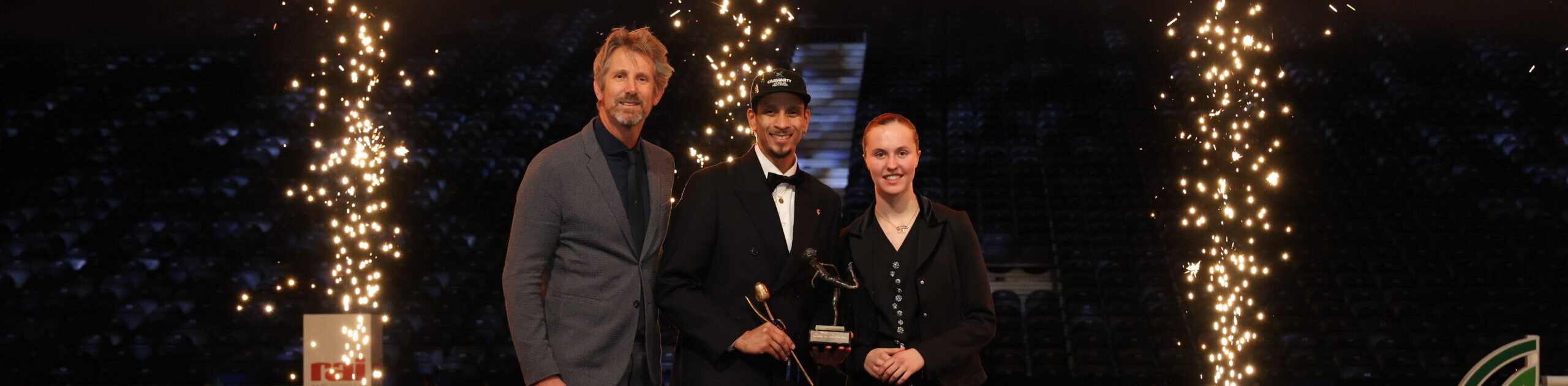 De ingang C van de RAI kleurde woensdagavond blauw – de kleur van het logo van Topsport Amsterdam. Het Amsterdamse sportgala vond dit jaar plaats aan de vooravond van Jumping Amsterdam, en dat was vooral te zien aan het zand in de piste voor de paarden. De 271 Amsterdamse kampioenen ploeterden zich door het zand naar het podium in het midden van de arena – vooral met naaldhakken een lastige opgave.