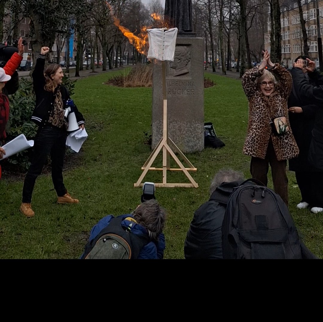 Als het korset vlam vat, begint de menigte van feministen bij het standbeeld van Wilhelmina Drucker in Amsterdam-Zuid te joelen. Strijdlustig gooien Dunya Verwey (78) en Claudette van Trikt (72) hun armen in de lucht. Precies 55 jaar geleden verbranden ze op dezelfde plek ook een korset, en riepen daarmee een nieuwe feministische beweging in het leven: Dolle Mina. De dames zijn inmiddels op leeftijd, maar om hen heen staat een grote groep vrouwen van alle leeftijden, klaar om het stokje over te nemen. De Dolle Mina’s van de jaren ’70 zijn terug met nieuwe acties om te laten zien dat feminisme nog net zo strijdlustig is als toen.