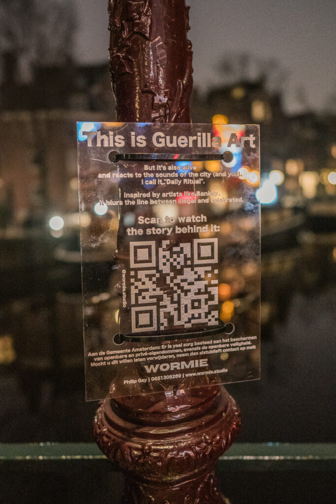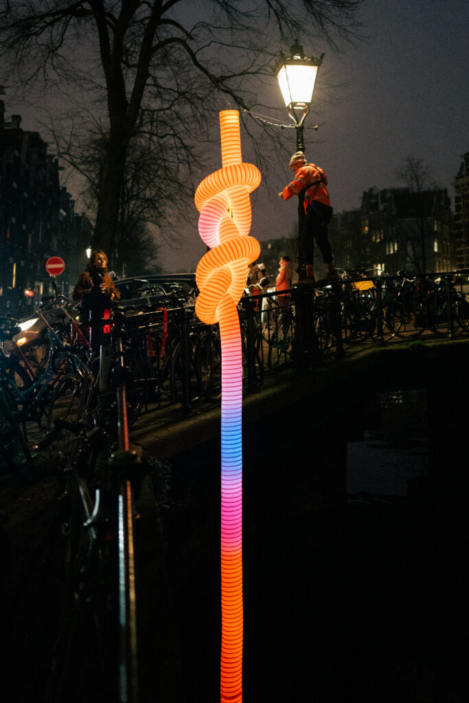 Het Amsterdam Light Festival werd op een bijzondere manier aangevuld met een extra installatie. Designer Philip Gay, eigenaar van Wormie Studio, installeerde zonder toestemming zijn kunstwerk op de Prinsengracht: de clandestiene lichtworm was een feit. ‘Als ik op toestemming had gewacht zouden we deze conversatie vandaag niet hebben.’