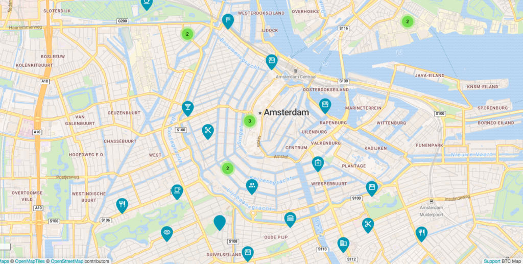 Steeds meer ondernemingen accepteren Bitcoinbetalingen. Op deze openbare Bitcoin-map waar iedereen aan kan bijdragen staan inmiddels 35 locaties in Amsterdam.
