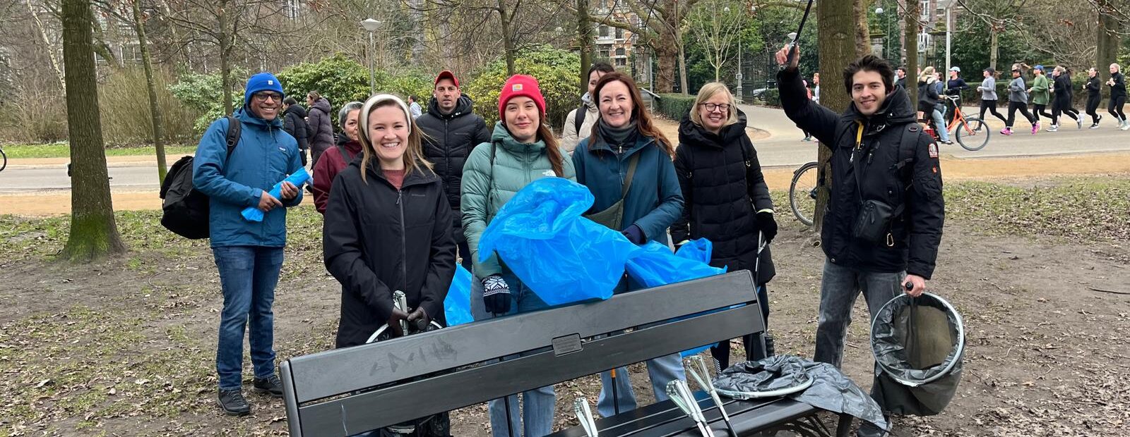 Het is druk in het Vondelpark in Amsterdam. Op zaterdagochtend passeren de fietsers de vele hardlopers in het park. De bankjes van het park zitten ondanks de frisse herfsttemperatuur vol met wandelaars. Bij de ingang van het park verzamelt zich deze ochtend een groep van ongeveer 10 vrijwilligers om afval op te ruimen. Peter, de coördinator van deze taak, deelt prikstokken uit en maakt met iedereen een praatje. Het gezelschap bestaat voornamelijk uit internationals, die vanuit alle windstreken komen. Vandaag is dat onder andere Italië, Zuid-Afrika, Mexico en de Verenigde Staten.