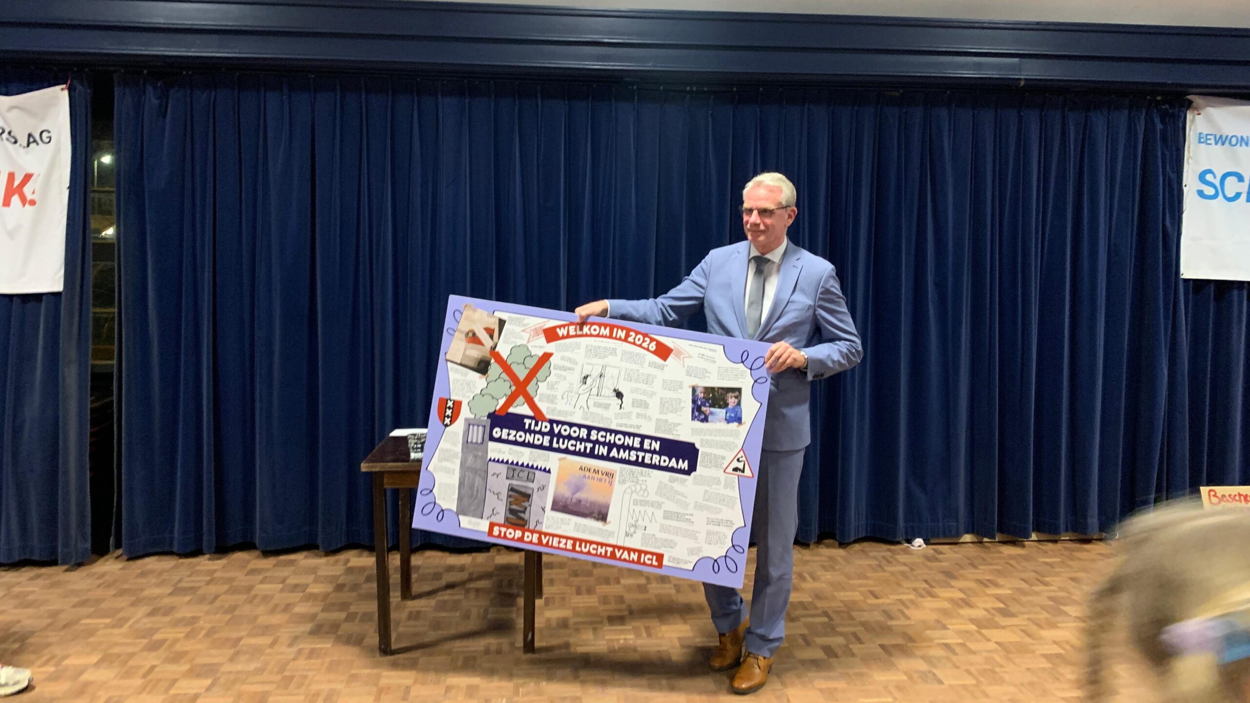 De bewoners van Noord zijn kritisch op die nieuwe vergunning. Afgelopen dinsdag overhandigden ze in het Zonnehuis in Amsterdam-Noord een grote nieuwjaarskaart aan Jeroen Olthof (PvdA), gedeputeerde van de provincie Noord-Holland. Daarop staan 170 wensen van Noorderlingen die hopen dat de stank van ICL in 2026 eindelijk stopt.