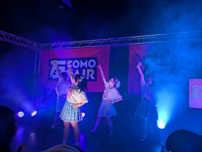 En dat is te zien in hun optreden. Op het podium wisselen ze af in samenstelling. Soms doen ze een nummer met zijn vieren, soms in twee- of drietallen en af en toe doet iemand een solo-act. Als Clover zichtbaar zenuwachtig het podium op gaat voor haar solomoment staan de andere drie naast het podium aan te moedigen. Alle drie houden ze een lichtgevende stick vast die ze naar roze schakelen, de karakterkleur van Clover.