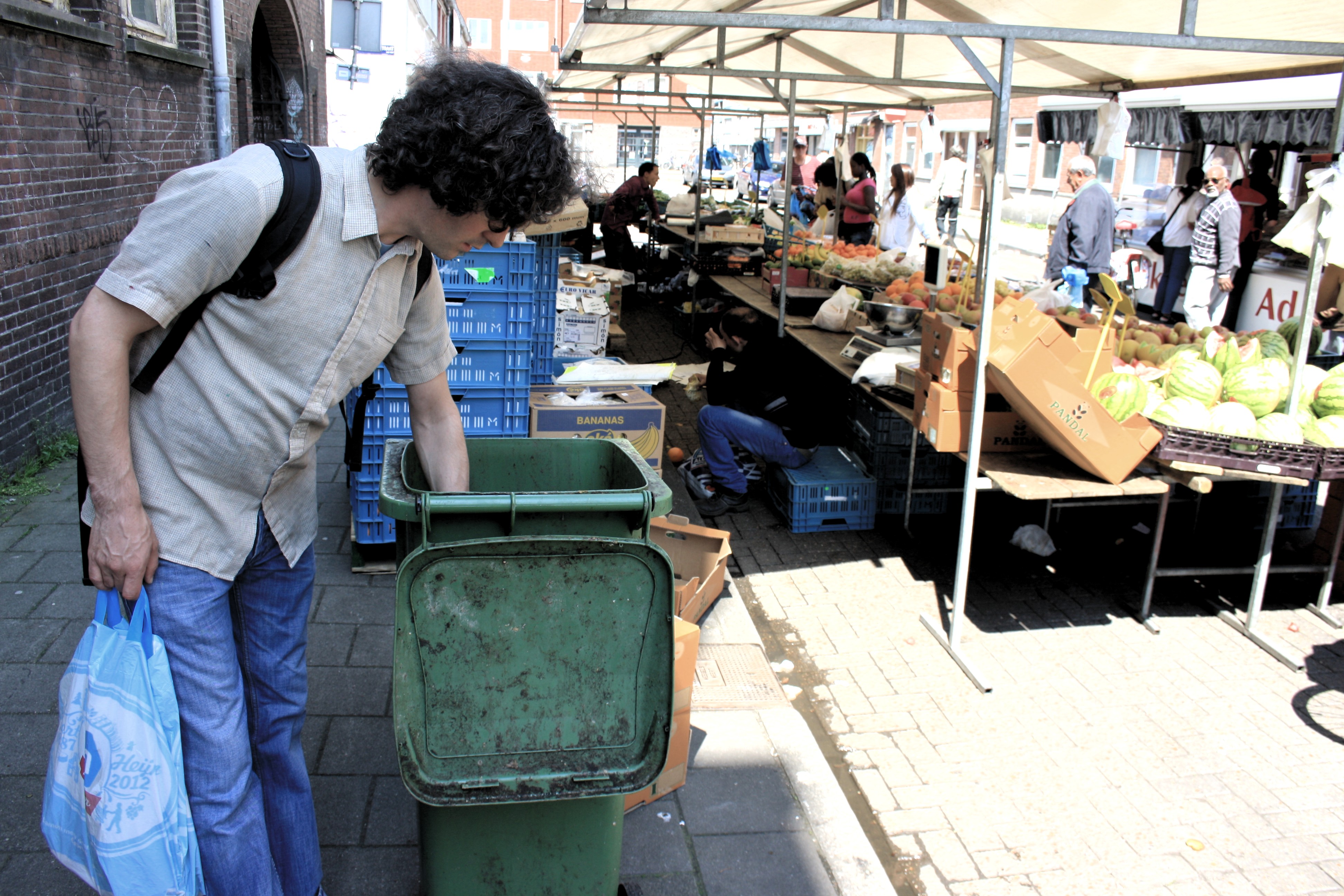 In Amsterdam is overal verborgen voedsel te vinden volgens voedselactivist Robin van Stokram (35). Hij doet aan ‘dumpster diving’: duiken in vuilnisbakken op zoek naar van alles wat nog bruikbaar of eetbaar is. “De kans dat je ziek wordt door eten in bepaalde restaurants is groter dan door voedsel uit de afvalbak.”