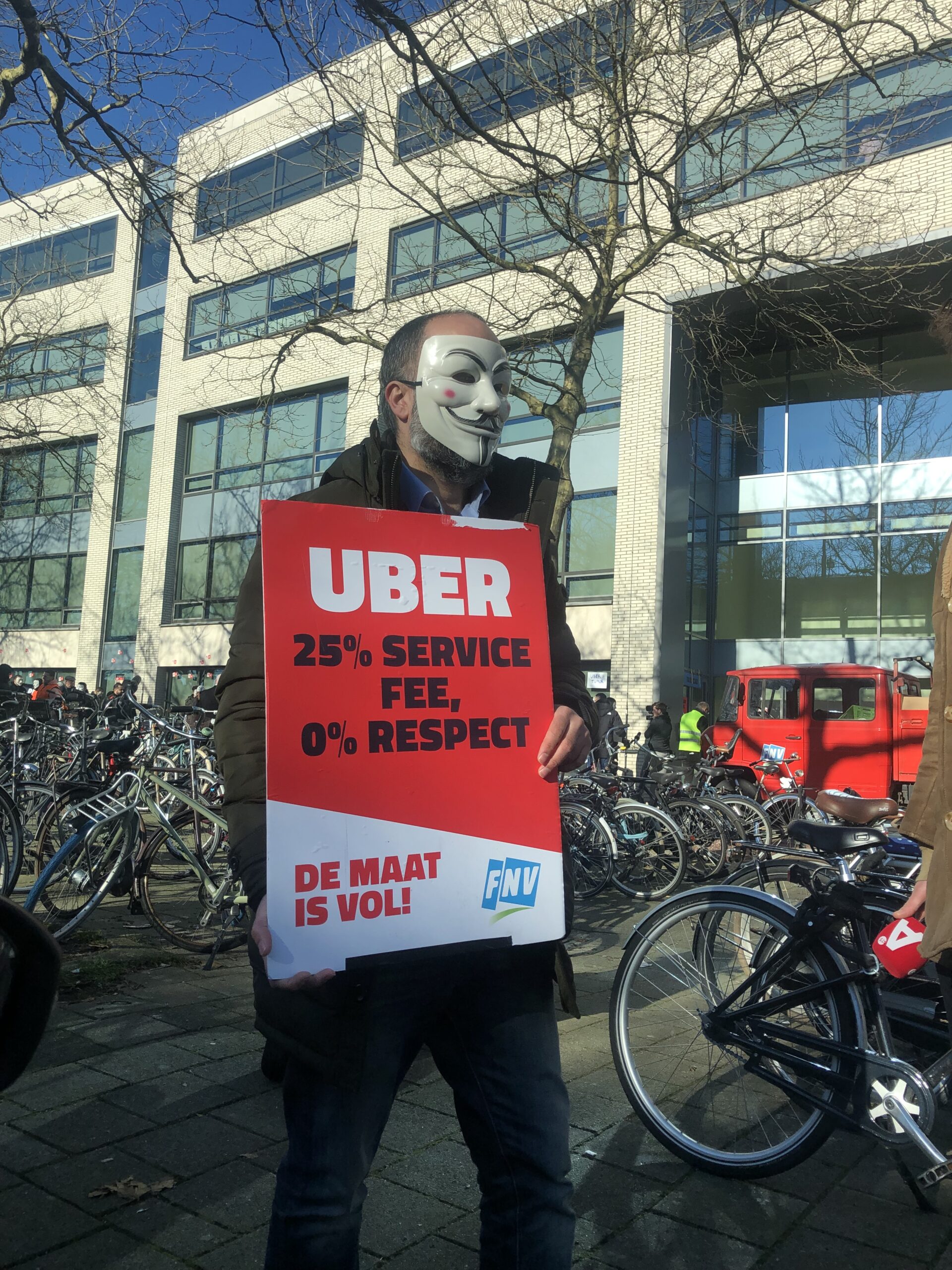 De kloof tussen Uber-chauffeurs en het bestuur is gigantisch, menen chauffeurs. Vandaag voerden zij samen met het vakbond FNV actie bij het Uber-hoofdkantoor in Amsterdam. ‘Het zijn gewoon klootzakken’