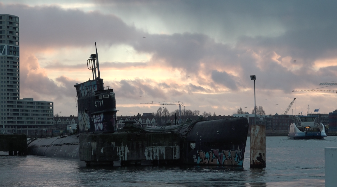 AMSTERDAM – Een Russische onderzeeër ligt al decennia lang weg te roesten in Amsterdam Noord. Wie de eigenaar is van het schip is onduidelijk. Dinsdag boog de Raad van State zich over de zaak.