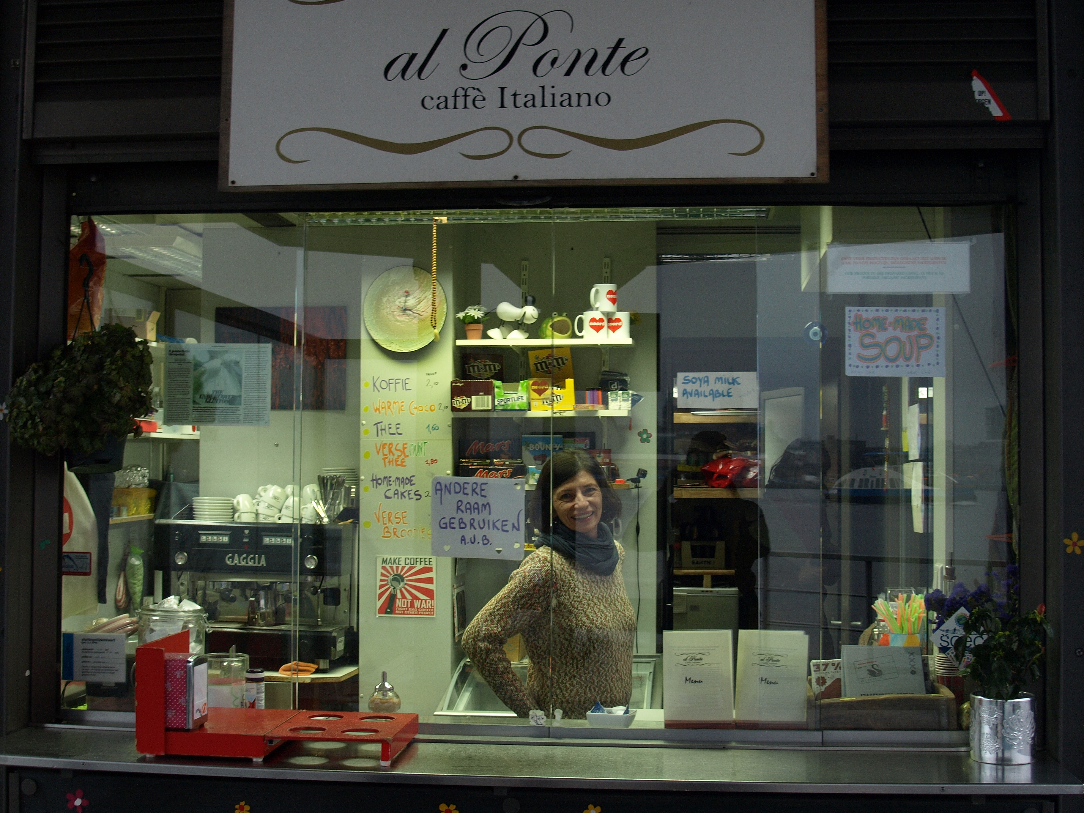 “Als je in Italië naar een bar gaat vraag je om een goede koffie. Hier vraag je om een koffie verkeerd. Dat zegt volgens mij genoeg.” Silvia Salani kwam in 1996 vanuit Turijn naar Amsterdam. Werk was er, alleen de goede koffie miste. Sinds 2007 is zij de eigenaresse van koffiekiosk “Al Ponte” in Noord. Een klein stukje Italië aan het IJ.