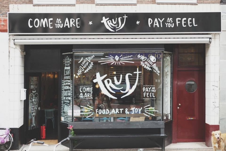 Zelf bepalen wat je betaalt. Dat kan in Café Trust in De Pijp. Medeoprichters Joyce Olivier en Hugo Leemhuis vertellen over de ideeën achter dit concept.